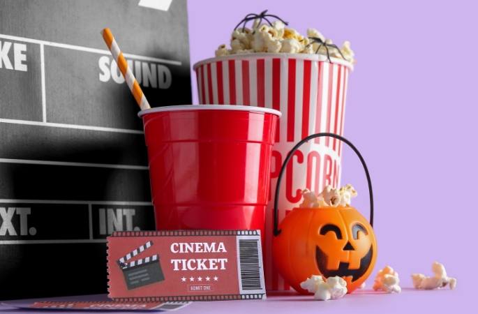 Ambiance terrifiante et gourmande garantie pour petits et grands ! Au programme de cette journée festive : popcorn, bonbons et maquillage pour se mettre dans l’esprit d’Halloween avant chaque séance.