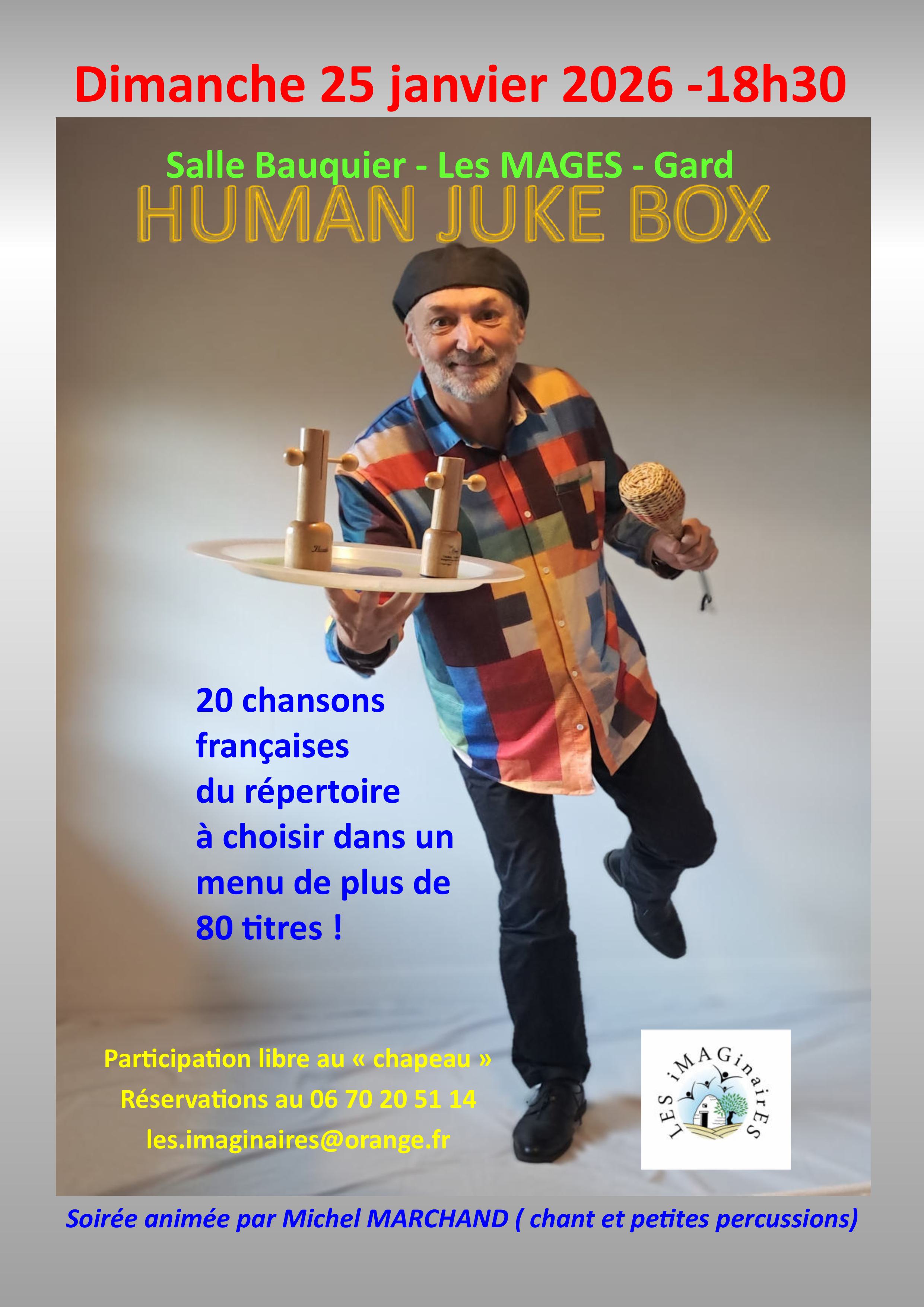 Et pour entamer l’année en musique, The Human Juke Box Michel Marchand, interprétera 20 chansons françaises du répertoire à choisir dans un menu de plus de 80 titres.