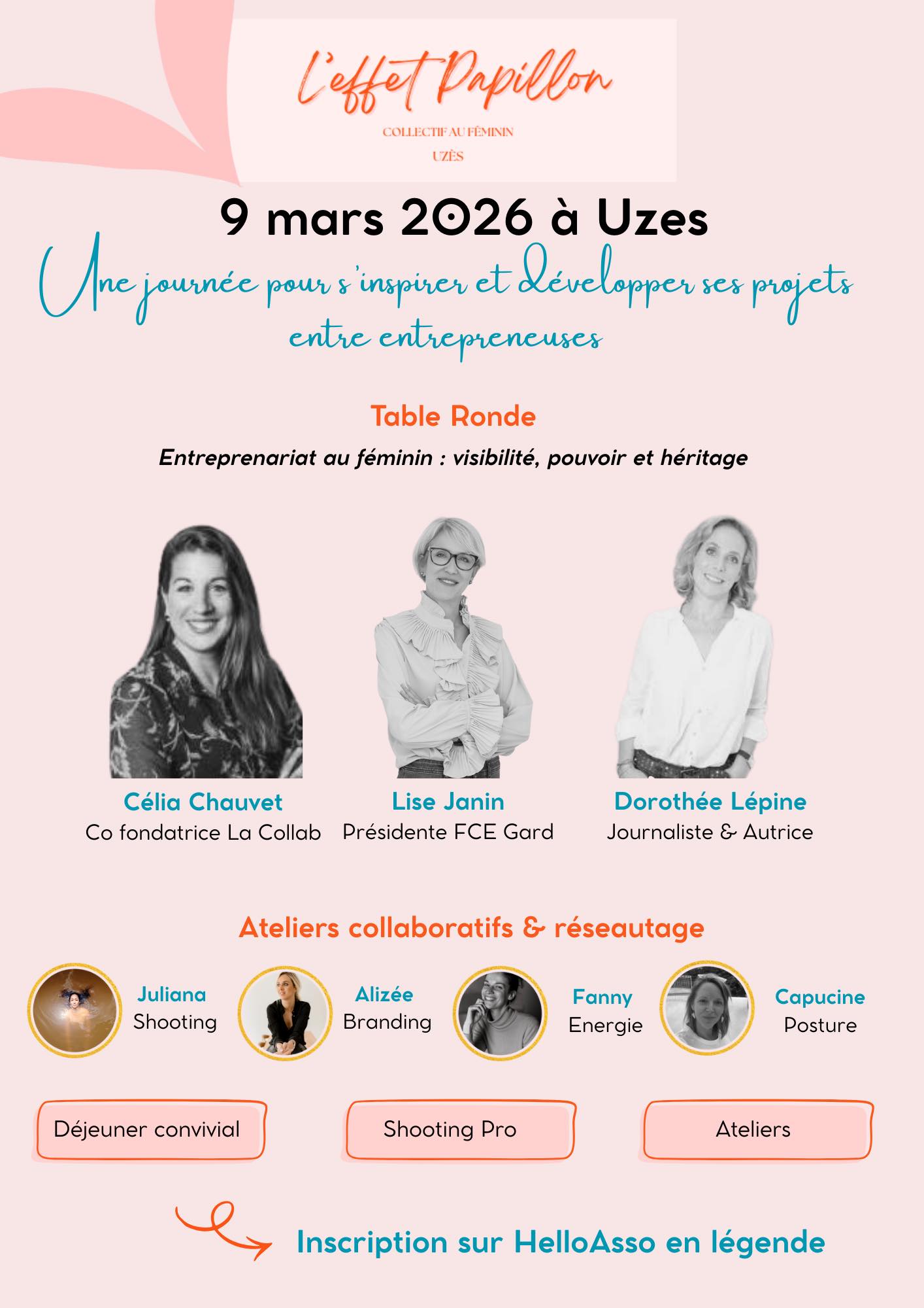 La journée s’ouvrira avec une table ronde inspirante, durant laquelle plusieurs intervenantes engagées et inspirantes partageront leurs parcours et leurs expériences pour nourrir nos réflexions et donner de nouveaux élans dans nos propres aventures entrepreneuriales. La journée se poursuivra avec des ateliers thématiques et encore plein d’autres belles surprises ! Sur réservation.