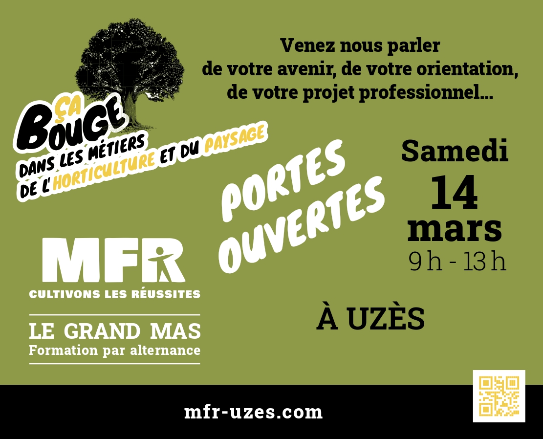 La MFR du Grand Mas d’Uzès organise une Journée Portes Ouvertes, destinée aux jeunes, aux familles ainsi qu’aux adultes en recherche d’orientation ou de reconversion professionnelle.