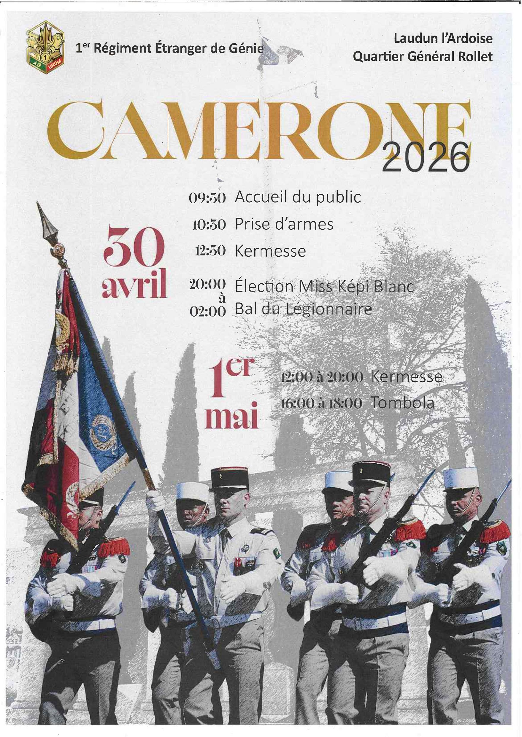 Le 1er REG célébrera le 163e anniversaire de la bataille de Camerone les 30 avril et 1er mai. Journées portes ouvertes avec kermesse, stands d’animation et une grande tombola.