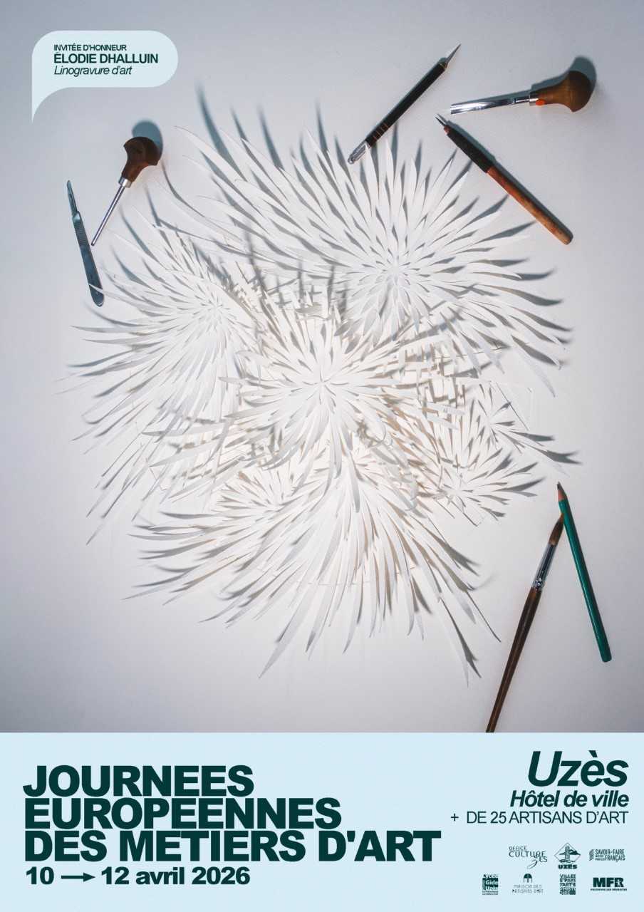 Les Journées Européennes des Métiers d’Art (JEMA) 2026 à Uzès se tiendront du 10 au 12 avril sous le thème “Cœurs à l’ouvrage « . Un programme riche et fédérateur à l’Hôtel de Ville et dans les ateliers-boutiques de la ville vous attend.