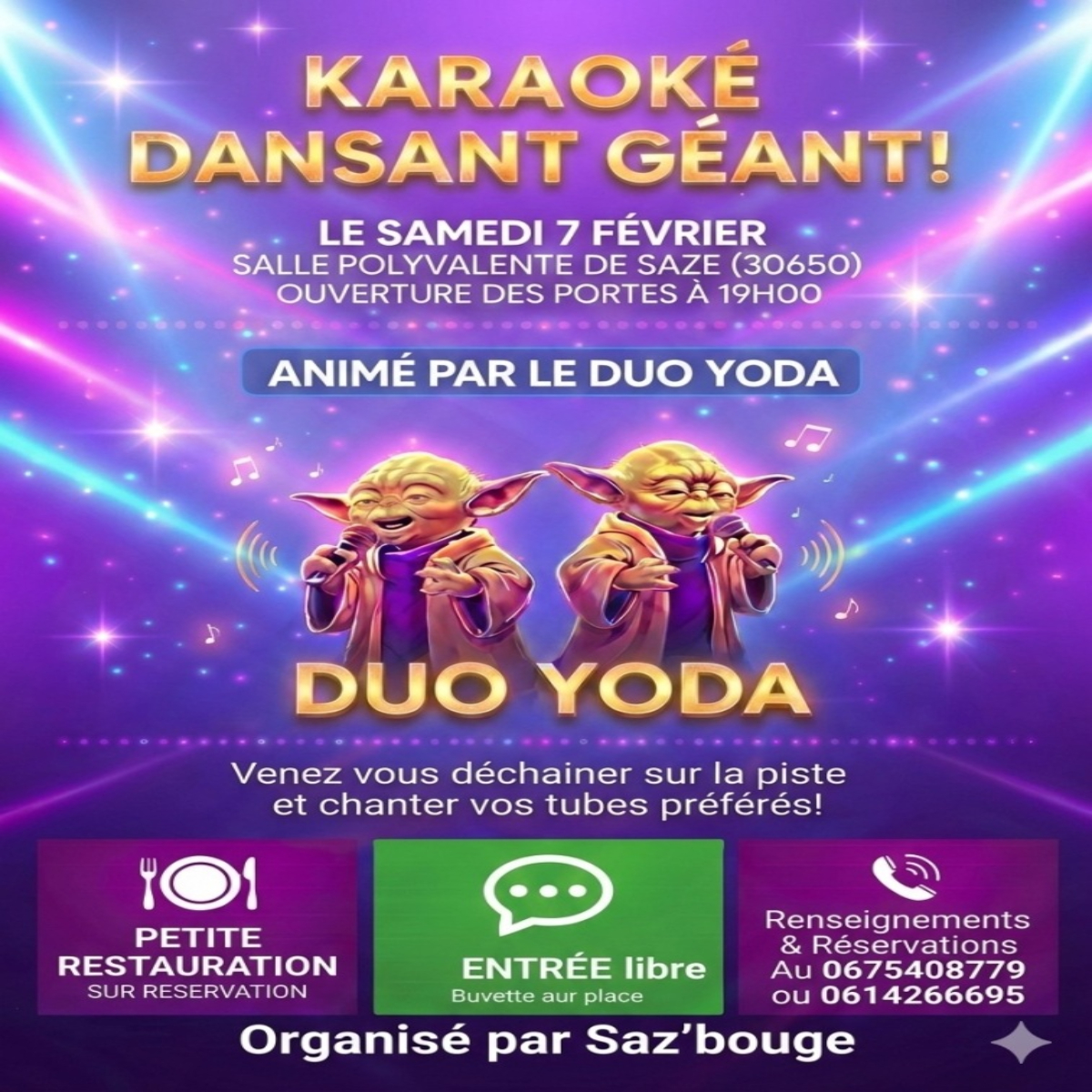 Salle polyvalente, 2 chemin du Pesquier30650 Saze