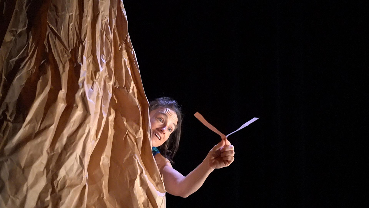 Dans le cadre du festival jeune public « Ramènes tes mômes », Kraft, du papier, une femme : son corps se glisse dans le papier. Le papier se sculpte aux mouvements de son corps. Elle le froisse, il se torsionne. Elle le transforme, il se dresse.