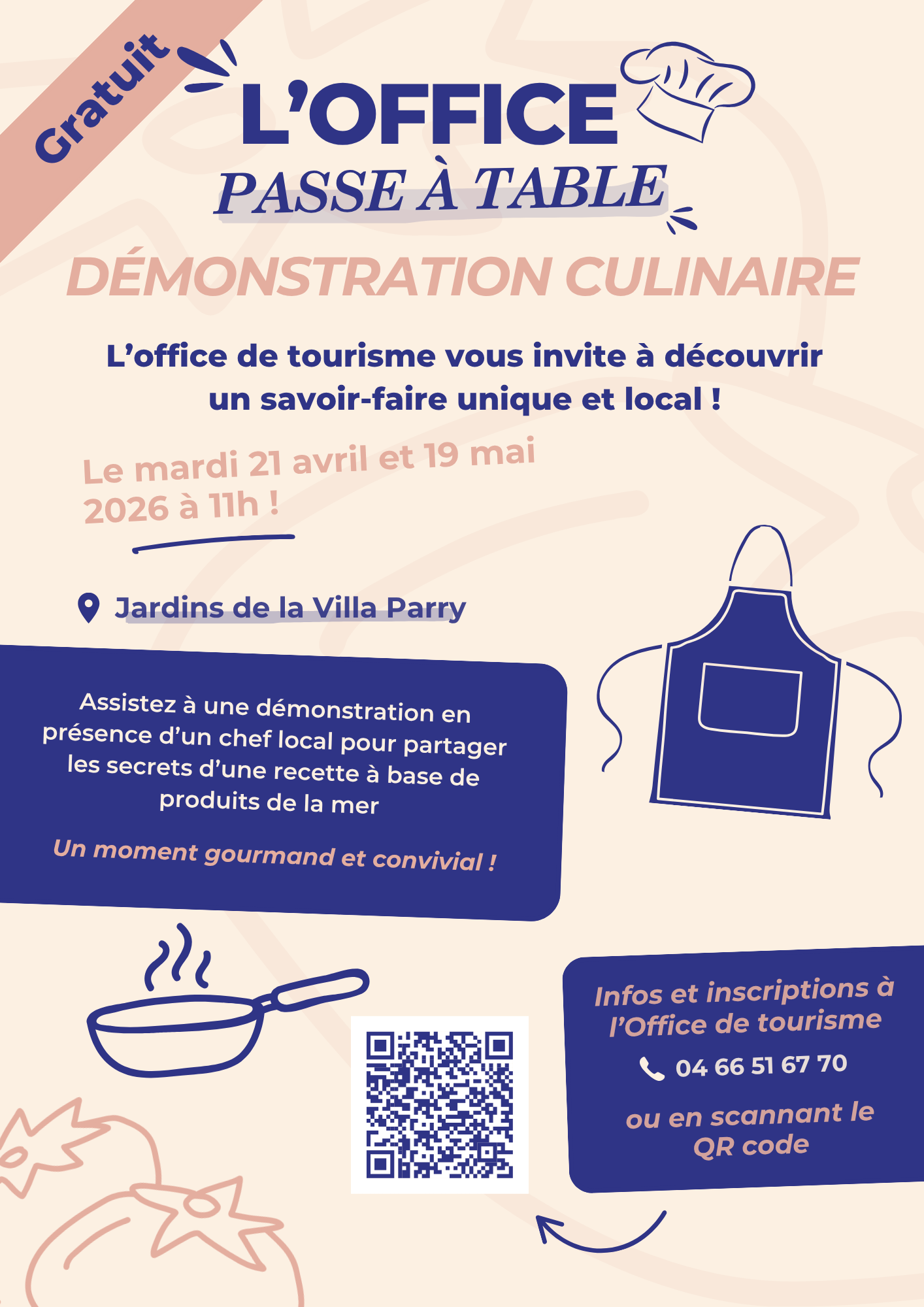 Découvrez les secrets de cuisine d’un chef lors d’une démonstration culinaire dans les jardins de la Villa Parry. Un chef du Grau-du-Roi vous invite à plonger dans l’authenticité de la gastronomie locale. Entre savoir-faire, produits du terroir et anecdotes savoureuses, laissez-vous emporter par cette expérience conviviale et généreuse. Une belle occasion de (re)découvrir les richesses culinaires de notre littoral.