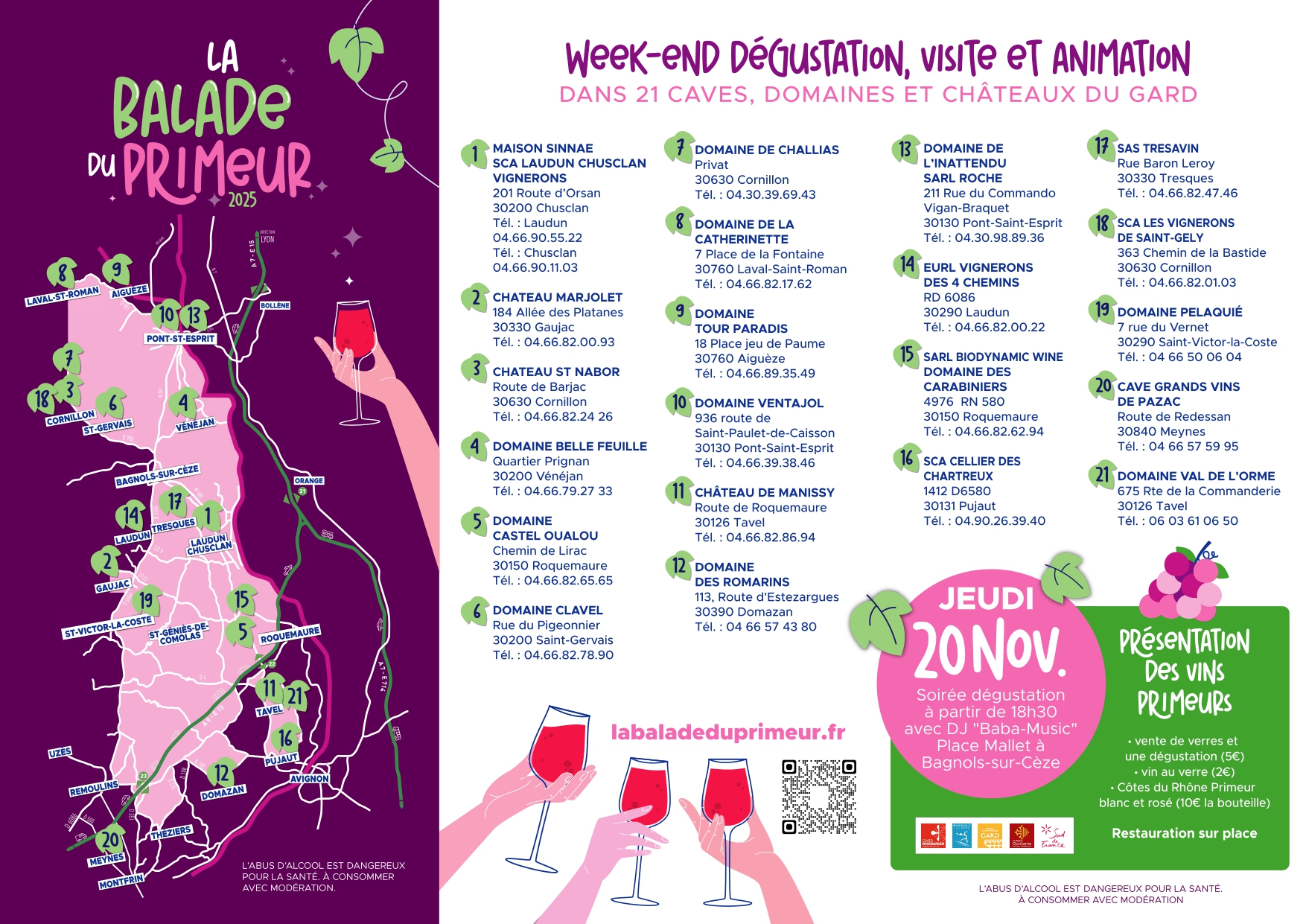 Chaque année, les caves, domaines et châteaux se plient en quatre pour vous recevoir. Pour cette édition 2025 de la Balade du Primeur, ce sont 21 lieux avec un programme personnalisé à découvrir