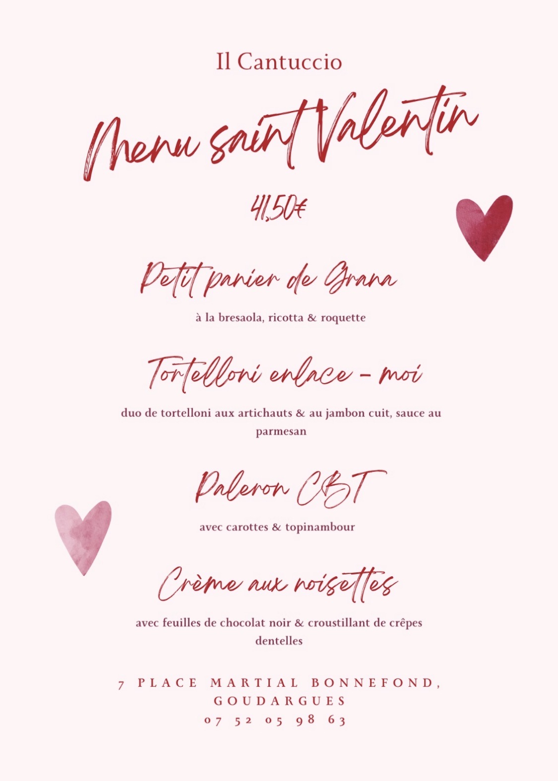 Fêtez la Saint Valentin dans une ambiance Italienne avec le restaurant Il Cantuccio à Goudargues ! un menu spécial vous attend avec ses produits en provenance directe d’Italie