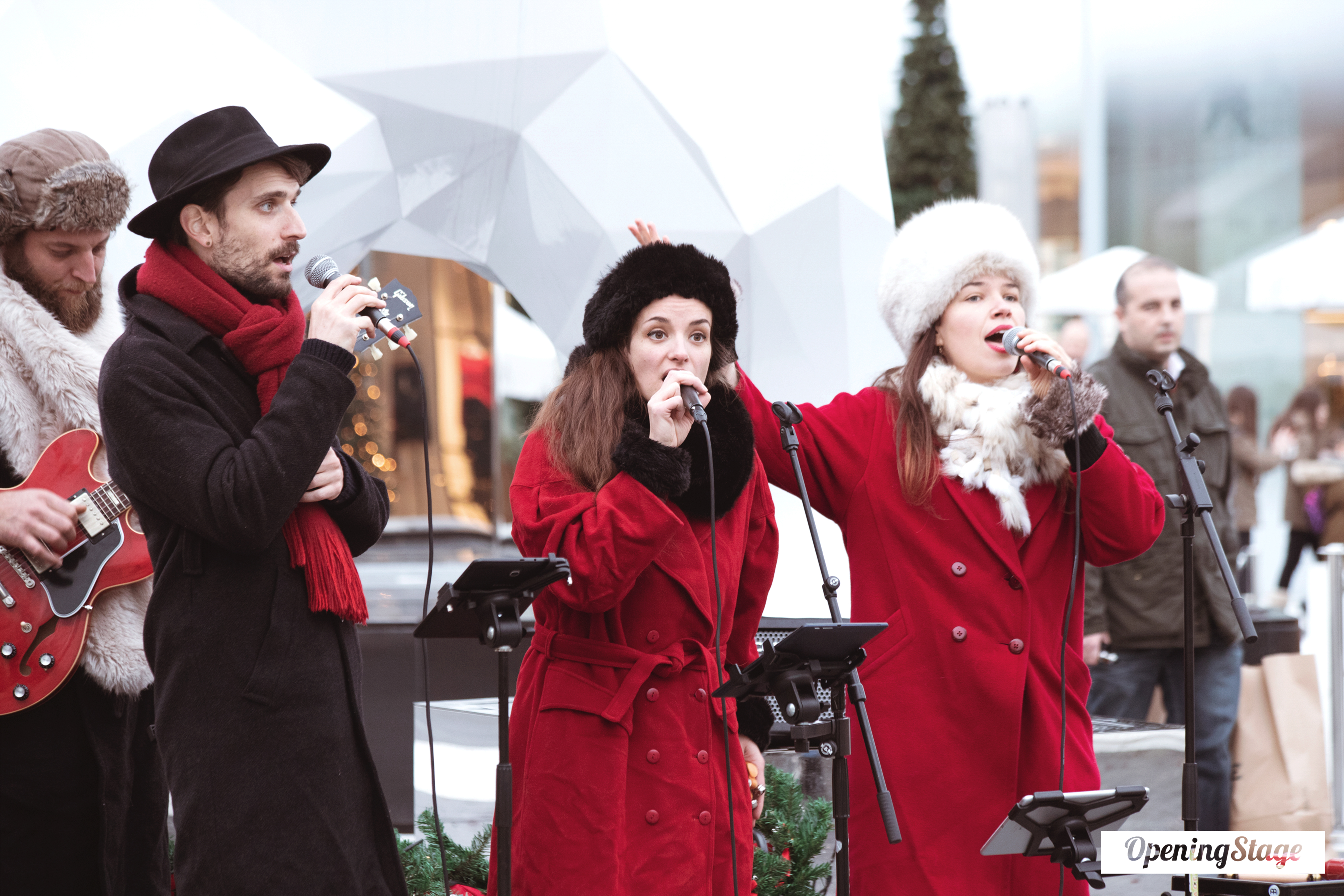 Une joyeuse troupe qui reprend les grands classiques de Noël en version rock et swing. Le tout accompagné d’une belle locomotive lumineuse qui crache de la fumée et des bulles.