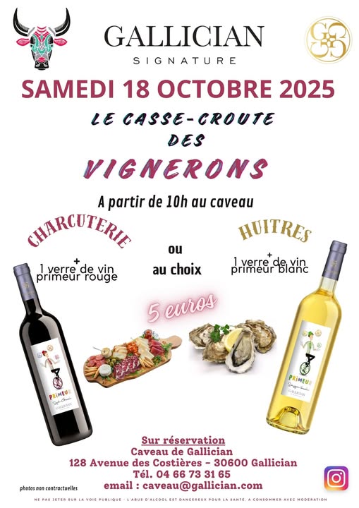 Le Casse-croûte des Vignerons Venez découvrir le vin primeur rouge ou blancA partir de 10h00Au choix pour 5 euros :