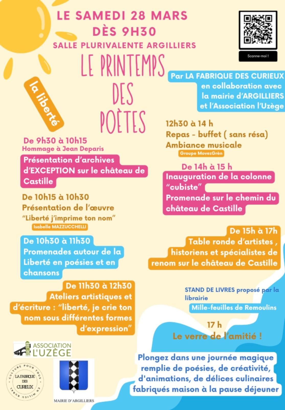 Les associations La Fabrique des curieux et de l’Uzège organisent la Journée des poètes sur le thème de la liberté. Plongez dans une journée magique remplie de poésies, de créativité, d’animations et de délices culinaires fabriqués maison.