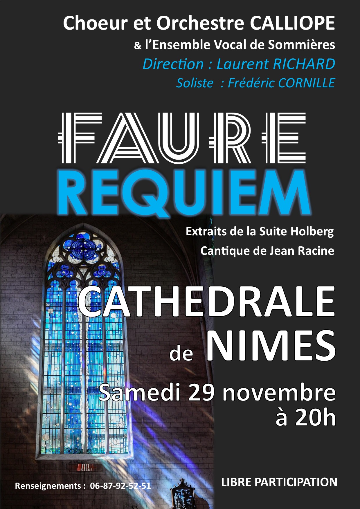 Sous la direction de Laurent RICHARD, l’Ensemble Calliopé « choeur et orchestre » interprétera le Requiem de G. Fauré. En 1e partie seront proposés 2 mouvements de la « Suite Holdberg » de Ed. Grieg et le « Cantique de Jean Racine ». Soliste Frédéric Cornille