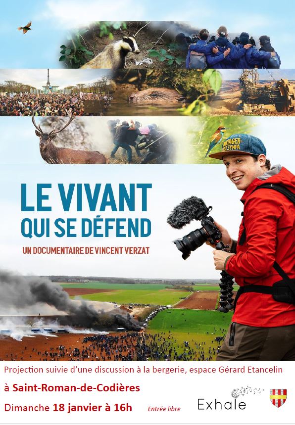L’association Exhale propose une projection publique du film le Vivant qui se défend le dimanche 18 janvier à 16h à la bergerie de Saint-Roman-de-Codières. L’entrée sera libre et le film sera suivi de discussions. Au plaisir de partager ce moment ensemble !