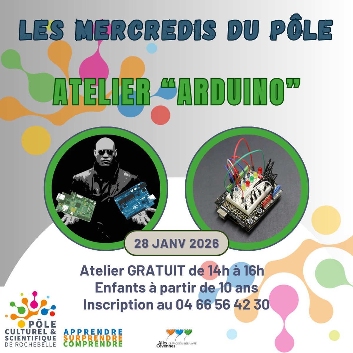 Bienvenue dans notre atelier où l’électronique et la programmation prennent vie ! Préparez-vous à plonger dans un monde fascinant rempli de découvertes, de créativité et de projets amusants ! Enfants à partir de10 ans / Insciption obligatoire au 04 66 56 42 30 Horaires : 14h00 – 16h00 / Gratuit