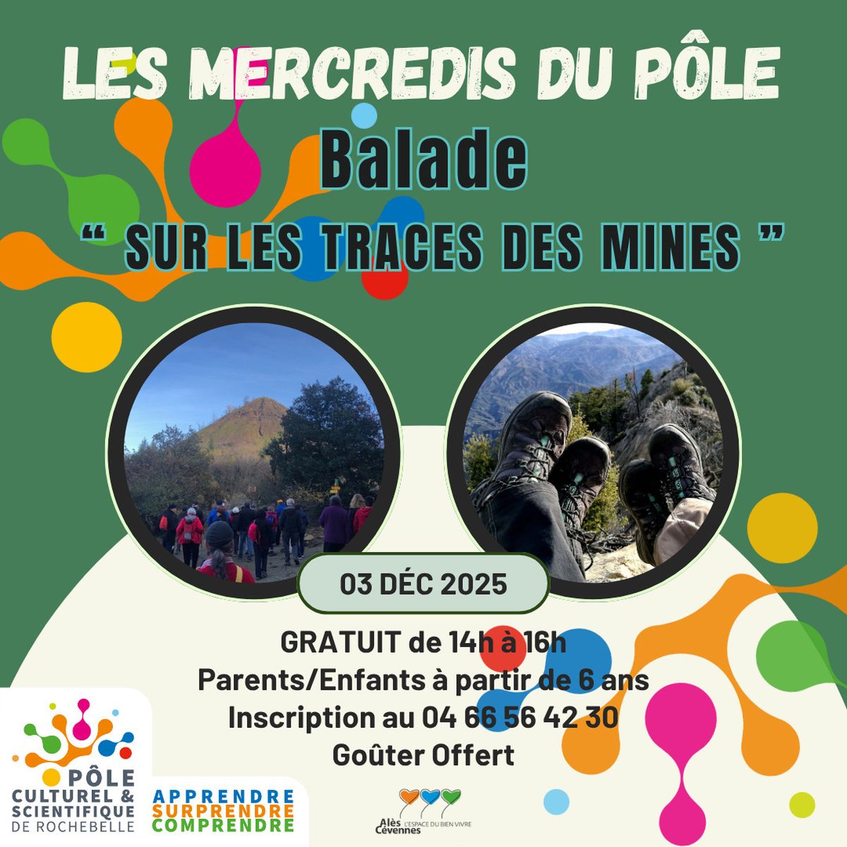 Explorez les sentiers du Mont Ricateau avec les médiateurs du Pôle et découvrez des trésors comme : le four à calamine, l’arbre à pain, le lavoir… (Prévoir des baskets _et bouteille d’eau)._ Un goûter sera offert aux enfants qui participent aux activités de la journée pour terminer en beauté ! Parents / Enfants à partir de 6 ans – Inscription obligatoire au 04 66 56 42 30 Horaire : 14h – 16h / GRATUIT