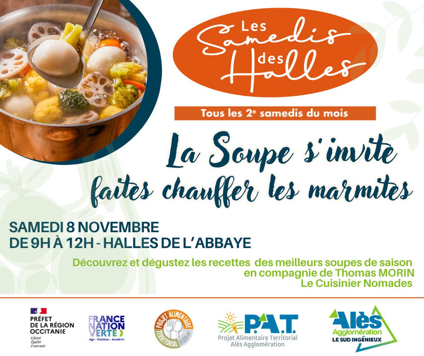 L’automne s’installe, les températures fraîchissent, et quoi de mieux qu’une bonne soupe réconfortante pour se réchauffer le cœur et les papilles ? Ce samedi, les Halles de l’Abbaye vous ouvrent leurs portes pour une matinée gourmande et conviviale, dédiée aux soupes de saison !