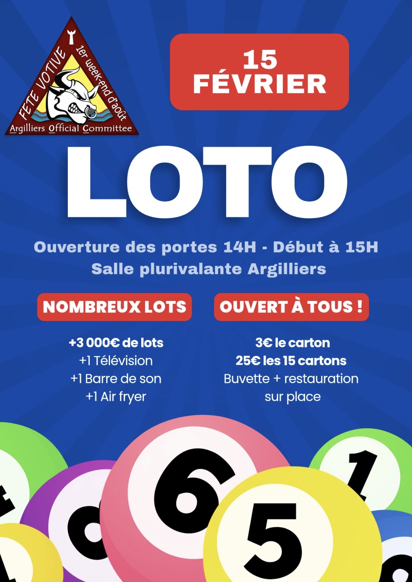 Le comité des fêtes d’Argilliers a dégoté de nombreux lots pour son loto. Venez tenter votre chance !Buvette et restauration sur place.