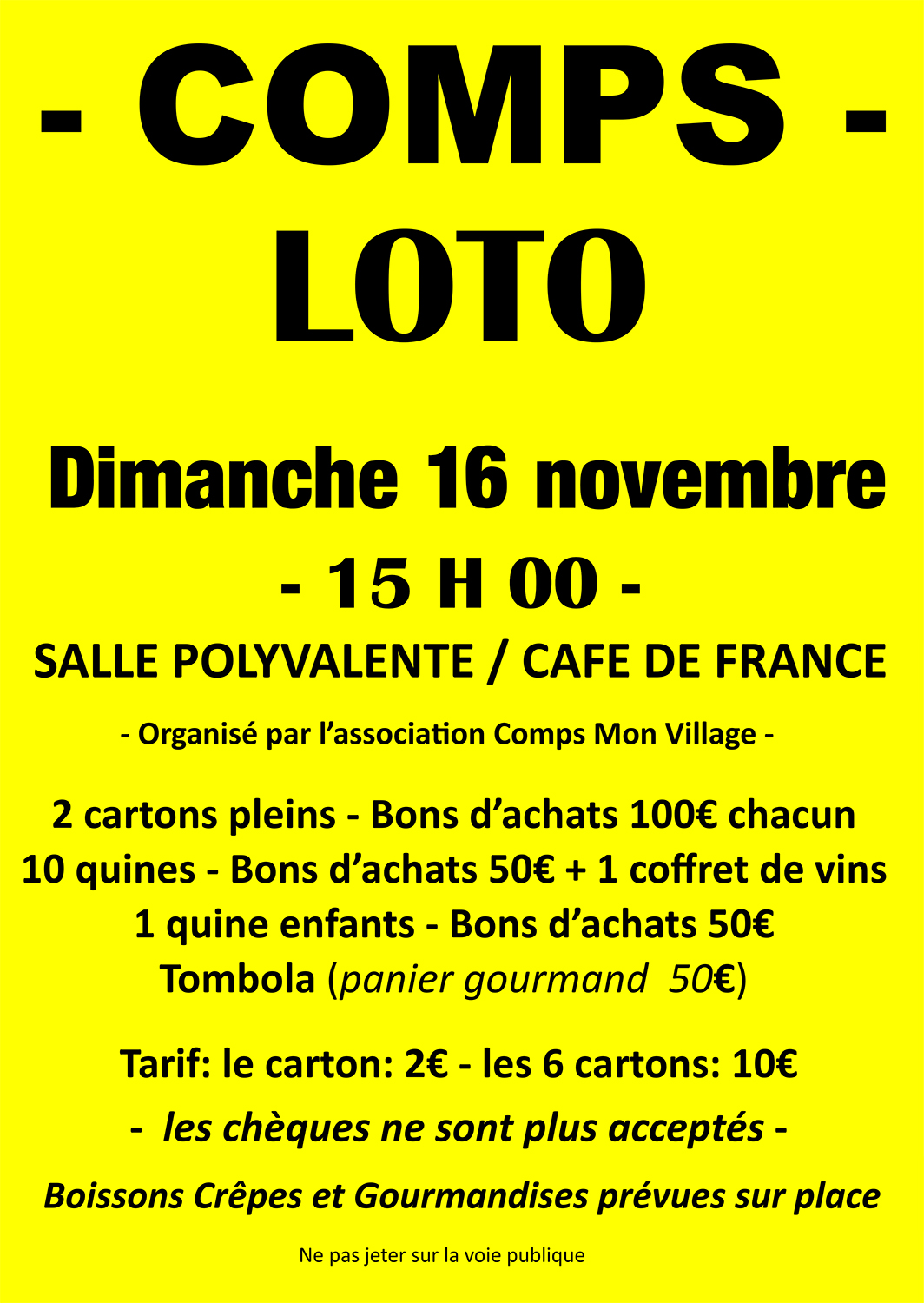 Si « Quine ! » et « Carton plein ! » sont des mots qui résonnent à vos oreilles, réservez votre après-midi pour participer au loto proposé par l’association Comps mon village.