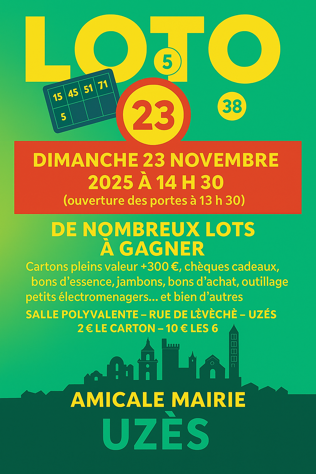 Venez tenter votre chance pour remporter l’un des nombreux lots à gagner lors du loto organisé par l’amicale de la mairie d’Uzès. De la quine aux bons d’achats, visez aussi les cartons pleins à 300 € !