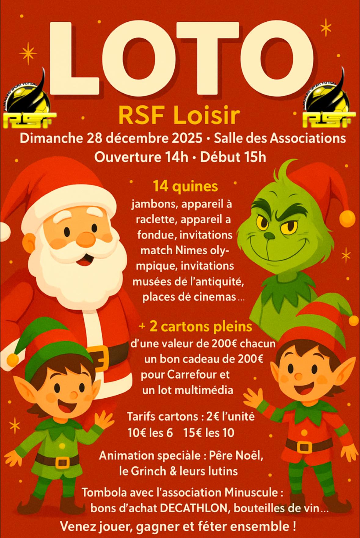 Le club Remoulins Sport Futsal organise son loto annuel : venez tenter de gagner de nombreux lots ! Multipliez vos chances avec une tombola de l’association « Minuscule ». Animation spéciale, buvette, crêpes et autres confiseries pour les gourmand.es.