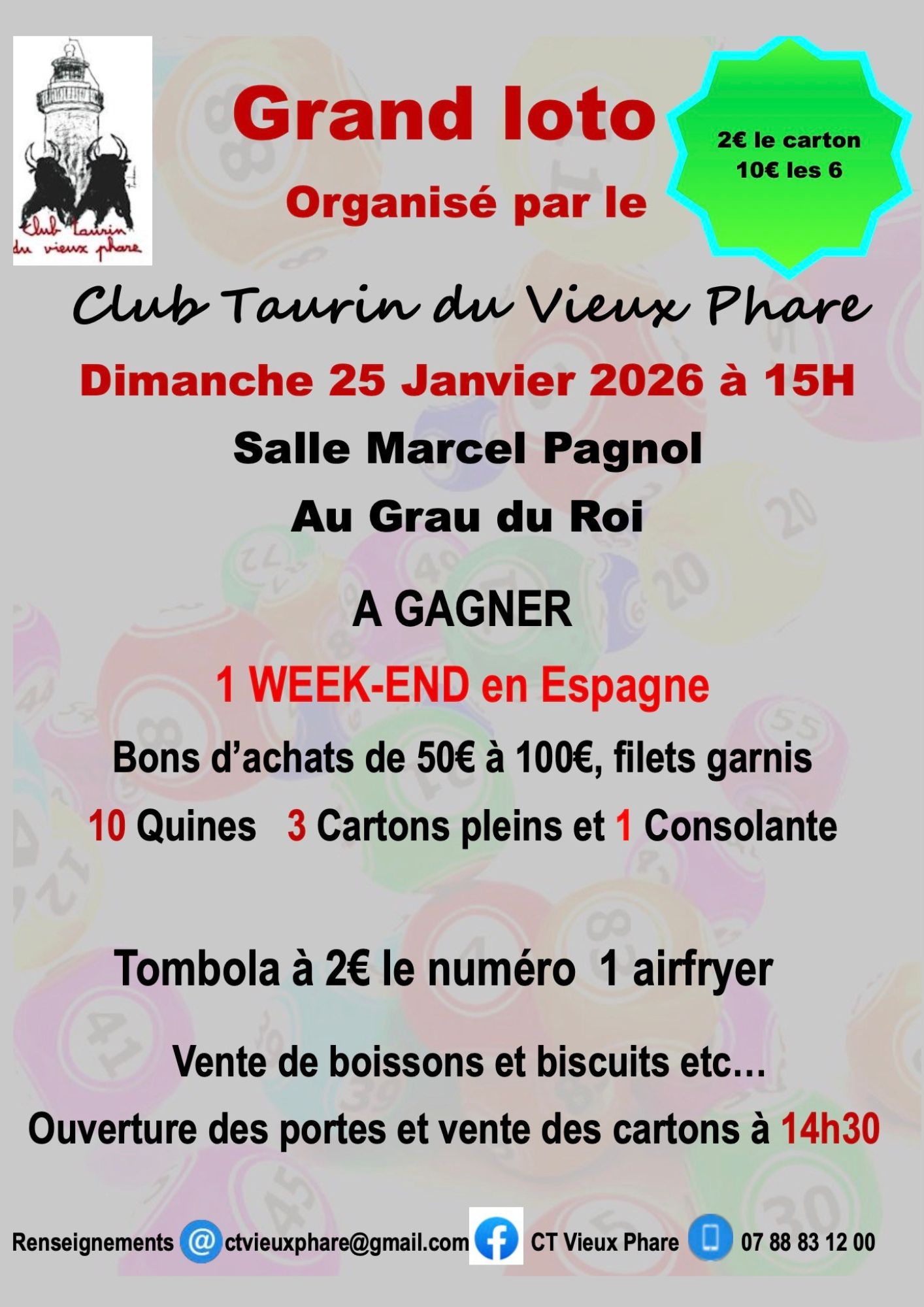 Le 25 janvier préparez vous à tenter votre chance ! Super loto organisé par le club taurin du vieux phare !
