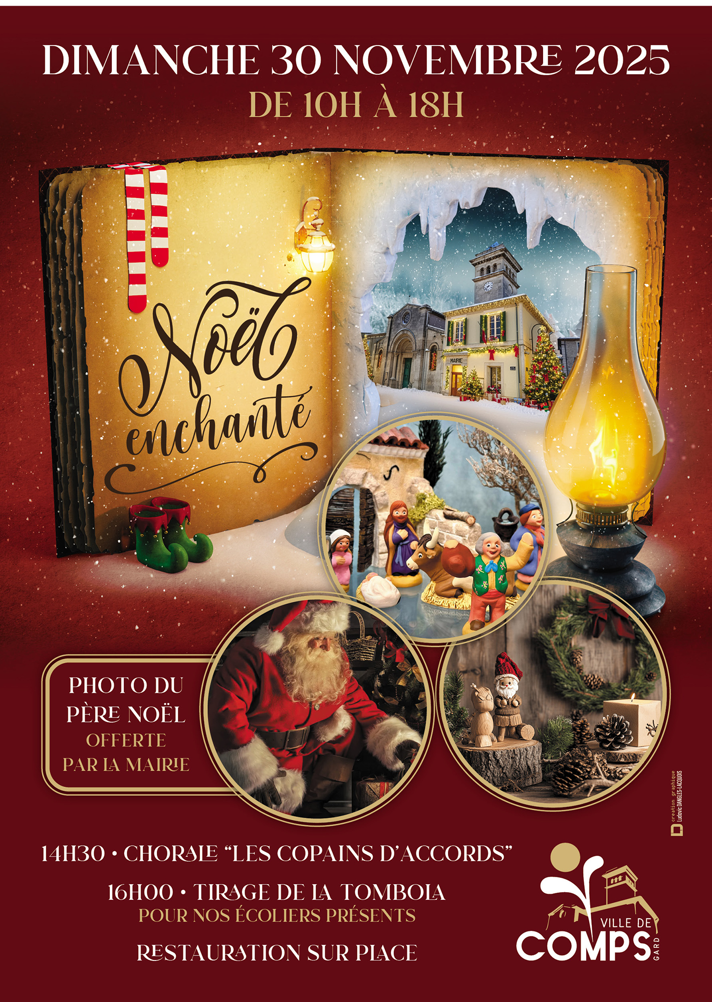 C’est Noël enchanté à Comps ! Nombreuses animations sur place : marché de créateurs, animations, photo avec le Père Noël, concert et tombola pour les écoliers de la commune. Restauration sur place.