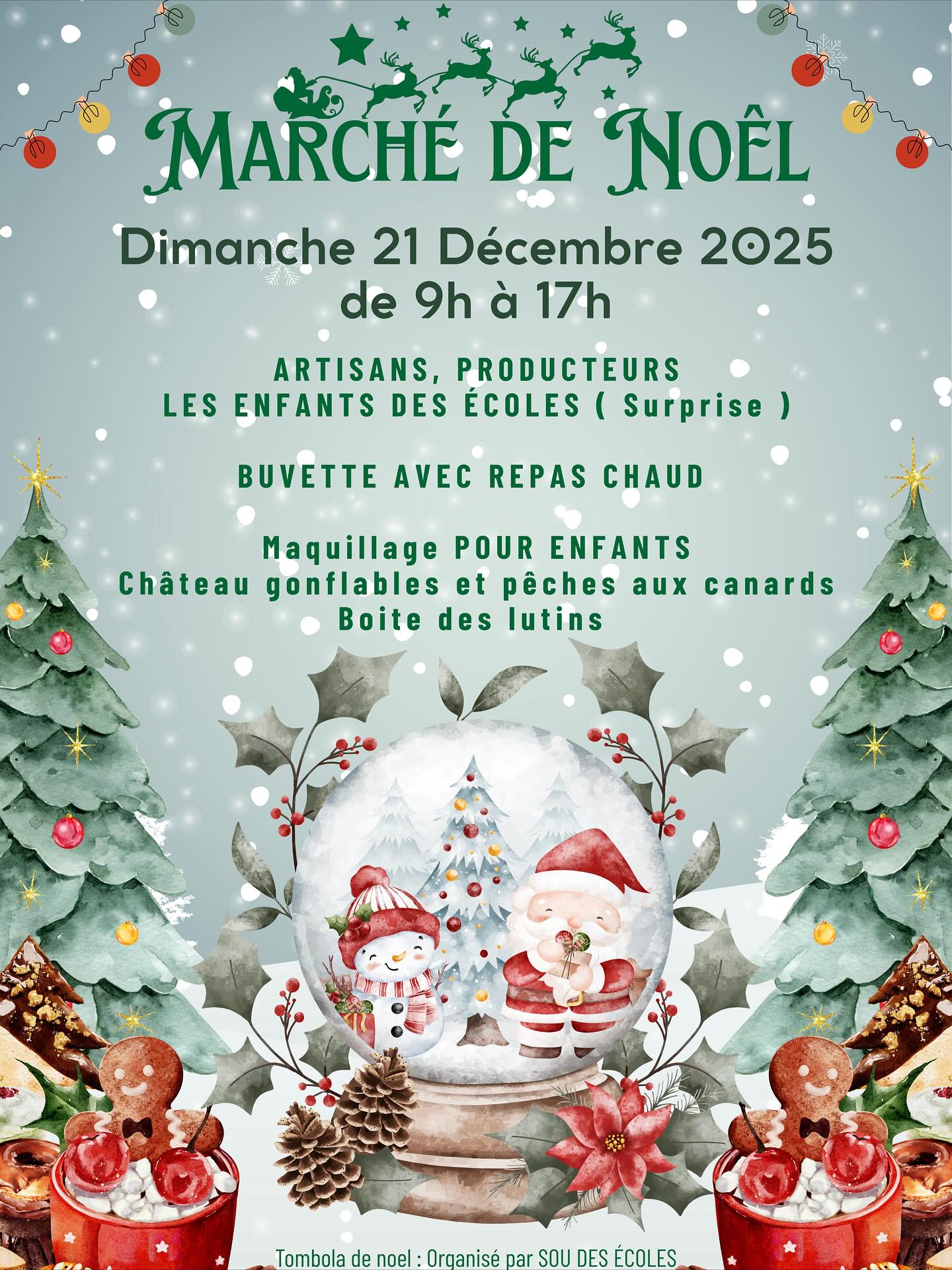 Maquillage pour enfants Château gonflables Pêches aux canards Boîte des lutins Tombola de Noël, Sou des Écoles