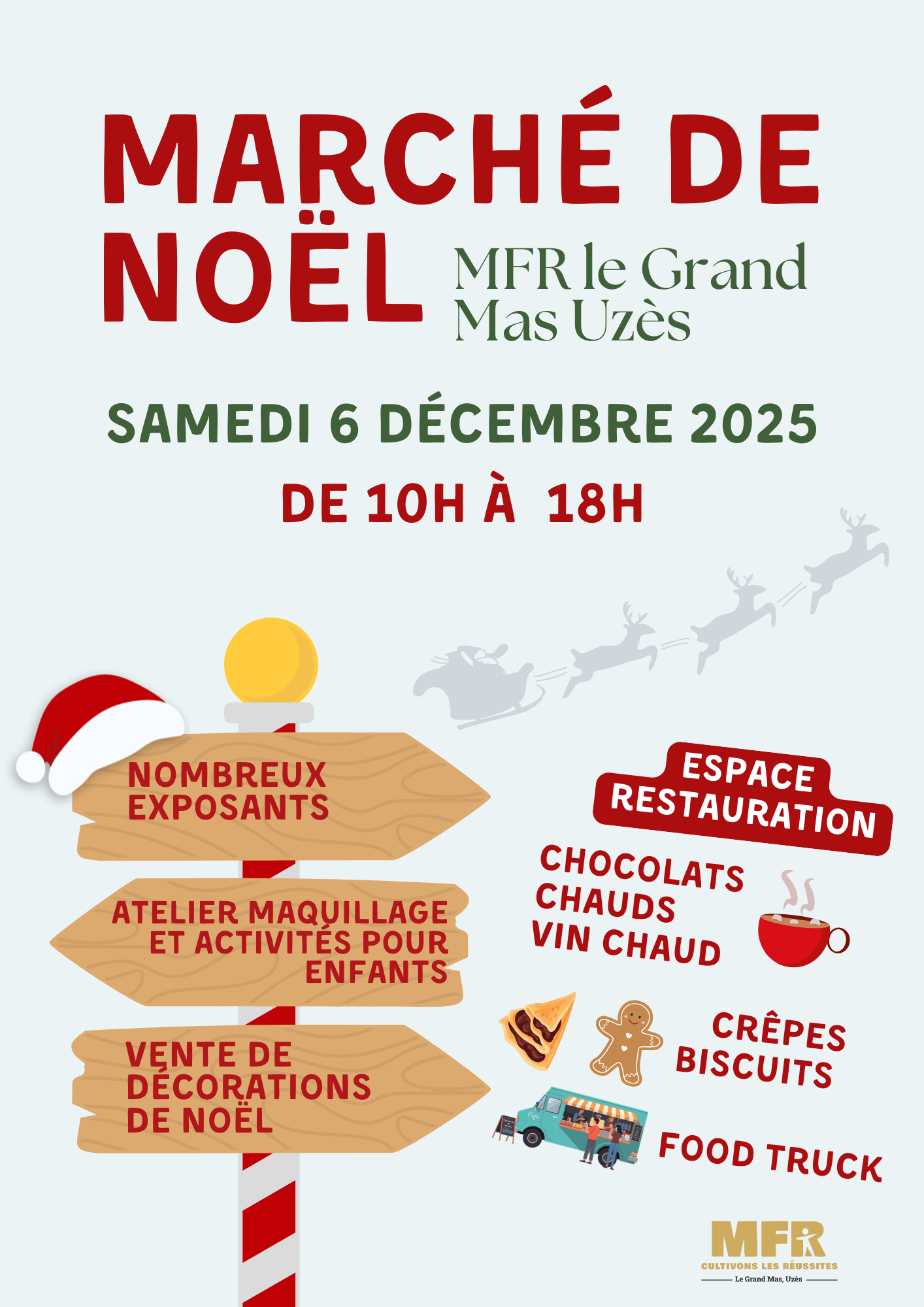 Le Marché de Noël d’Uzès vous attend à la MFR Le Grand Mas !Cet événement a pour objectif de récolter des fonds afin de soutenir les projets pédagogiques et les sorties scolaires de nos élèves.