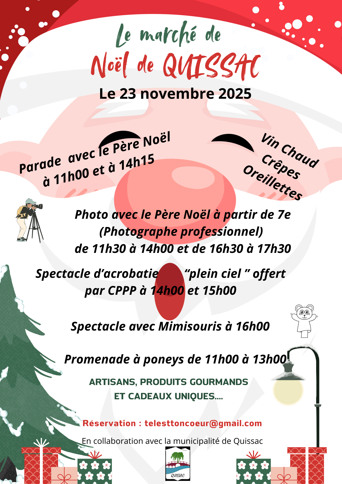 Marché de noël au profit du téléthon.Présence de stands tout au long de la journée et présence du Père Noël !