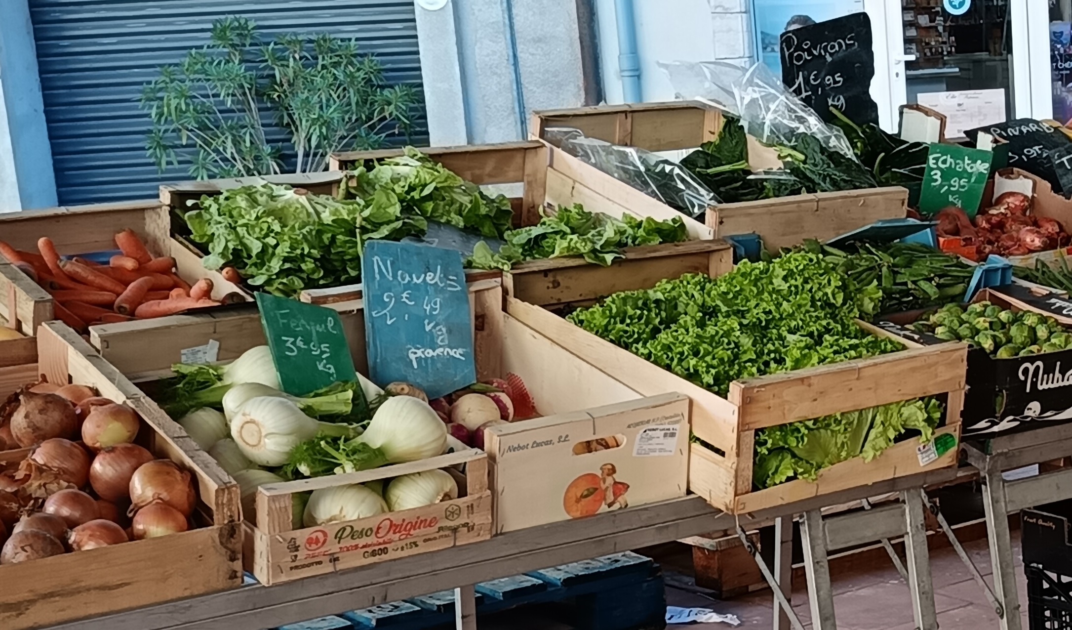 Le Marché se trouve à côté de la Maison pour TousOn y trouve du pain, du vin, du fromage, des confitures, des fruits et légumes et du poisson.