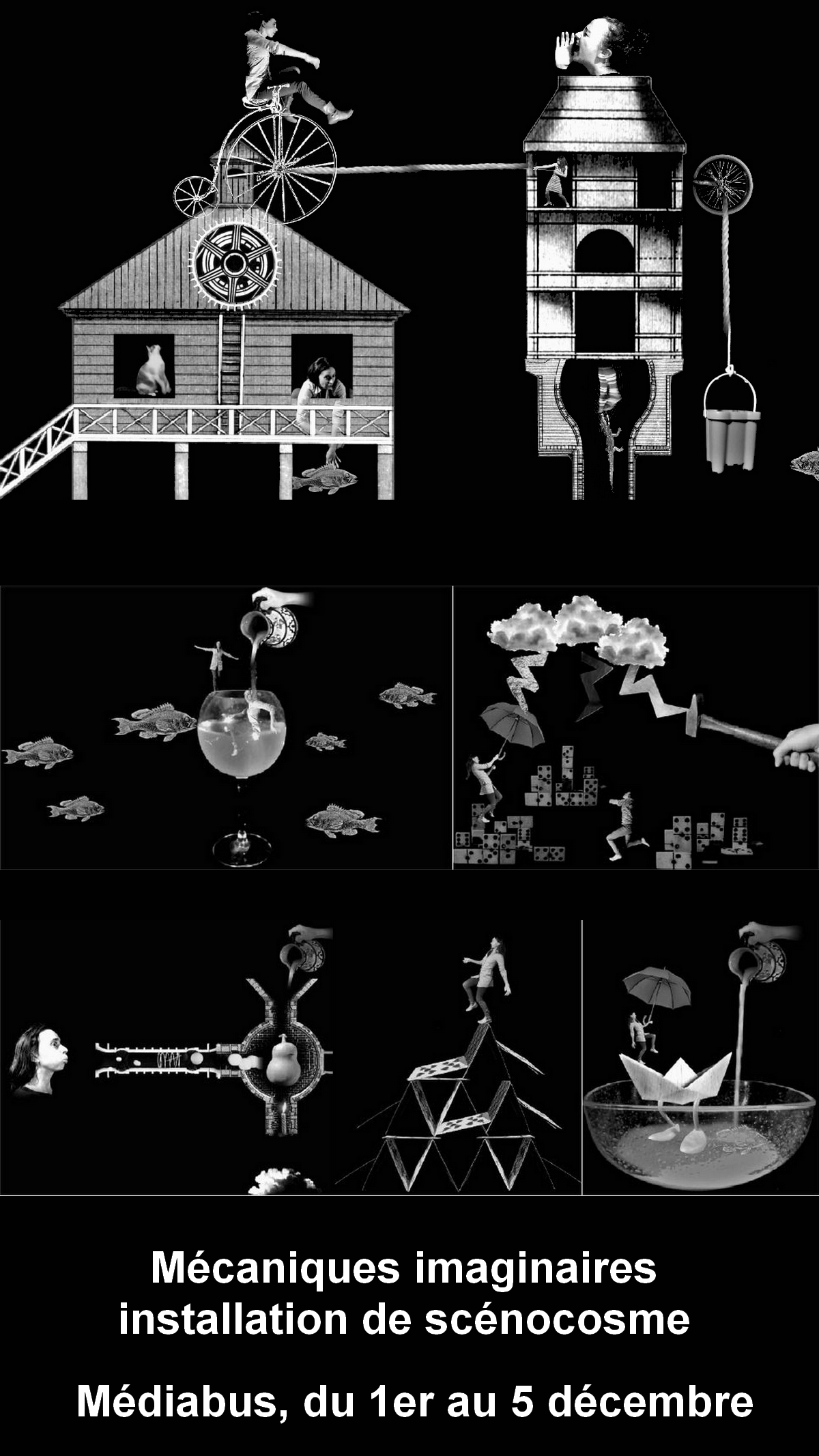 Cette oeuvre d’art numérique interactive permet de créer en temps réel des mises en scènes de relations improbables entre personnes, situations et objets, produisant de petites histoires en relation avec l’écologie.