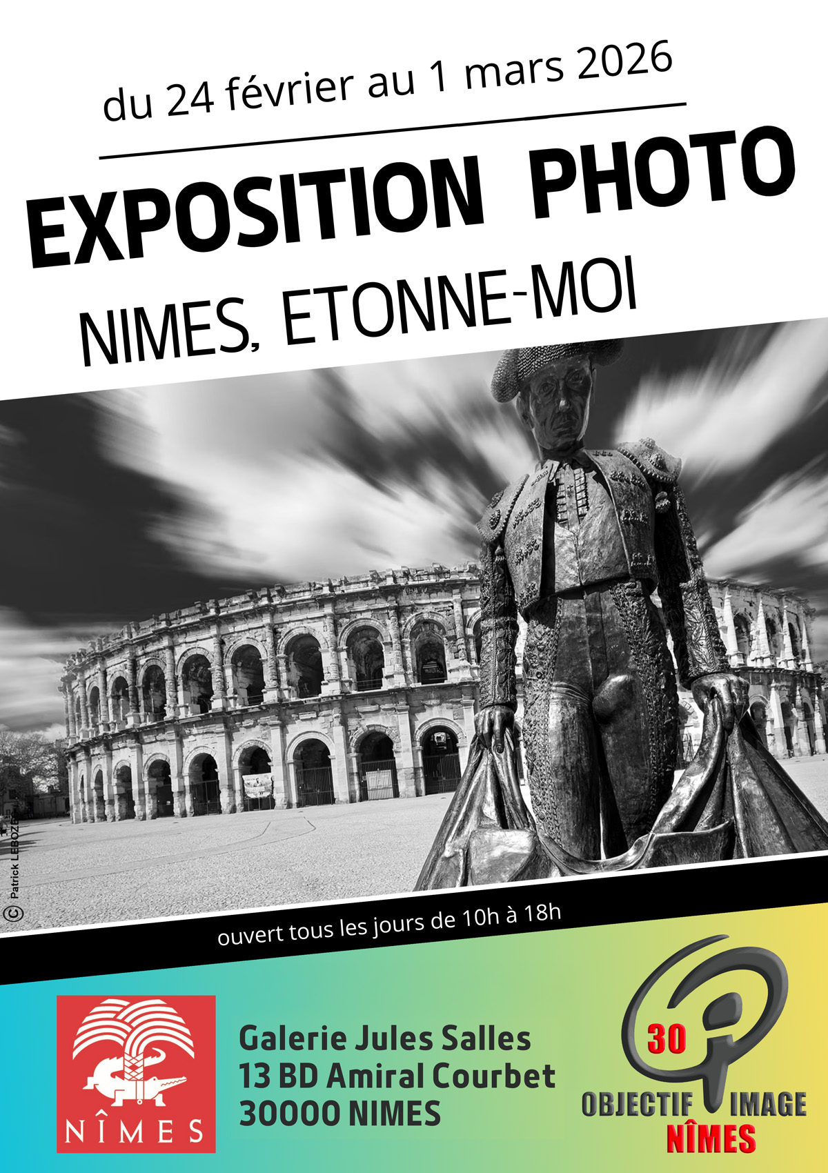 150 photos sur le thème « Nîmes, étonne-moi »40ème exposition du club Objectif Image 30 Nîmes. Les photographes amateurs proposent aux visiteurs de regarder Nîmes, au travers des 150 photos exposées, sous un angle qui leur permettra de s’étonner.