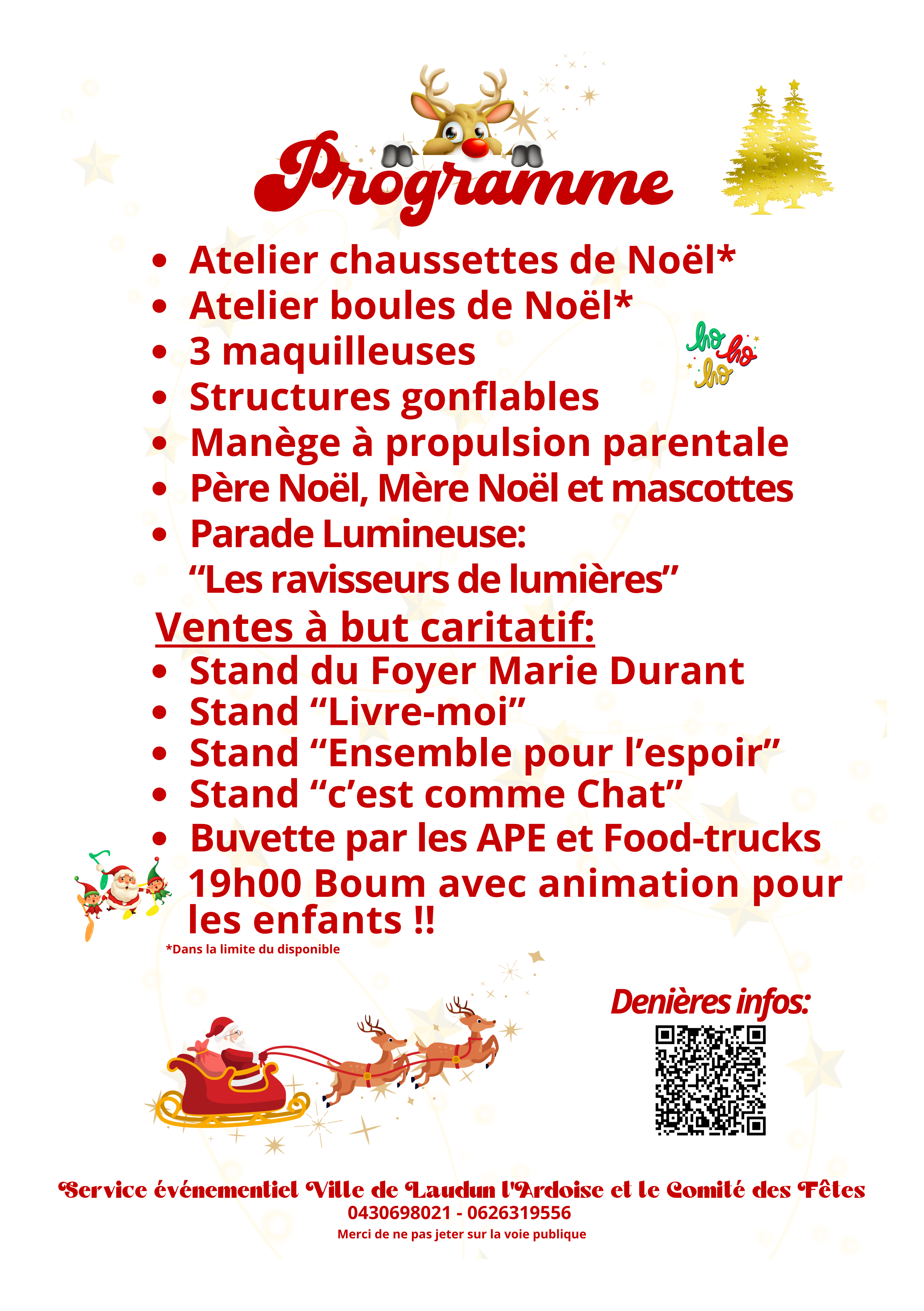Nombreuses animations tout l’après midi : structures gonflables, ateliers, maquillage, animations pour les enfants, Père Noël et ses lutins pour se mettre dans l’ambiance des fêtes de fin d’année !