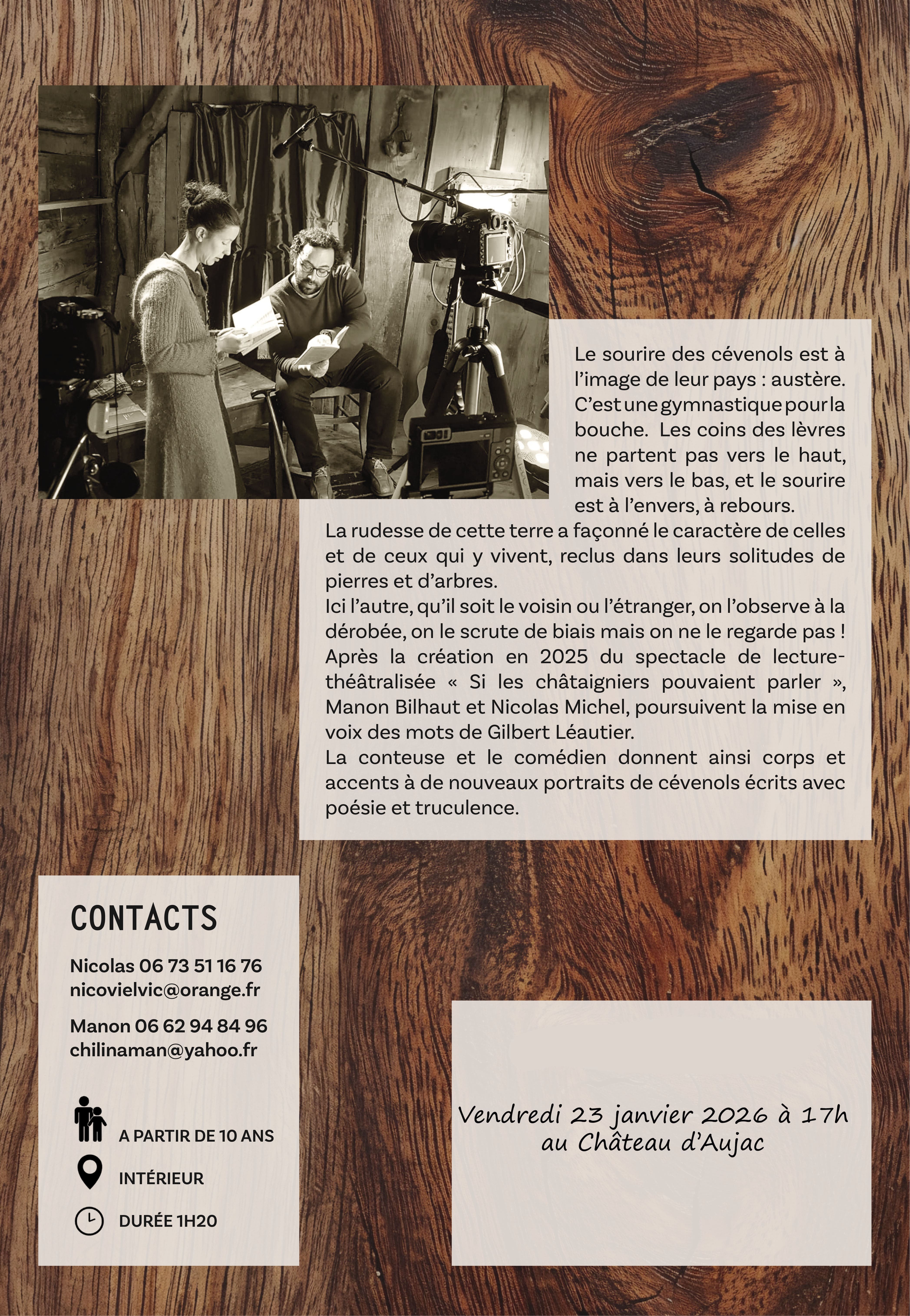 Cette année encore, Manon et Nicolas vous emmèneront à la découverte d’authentiques personnages issus de ce petit territoire niché au pied du Mont Lozère.