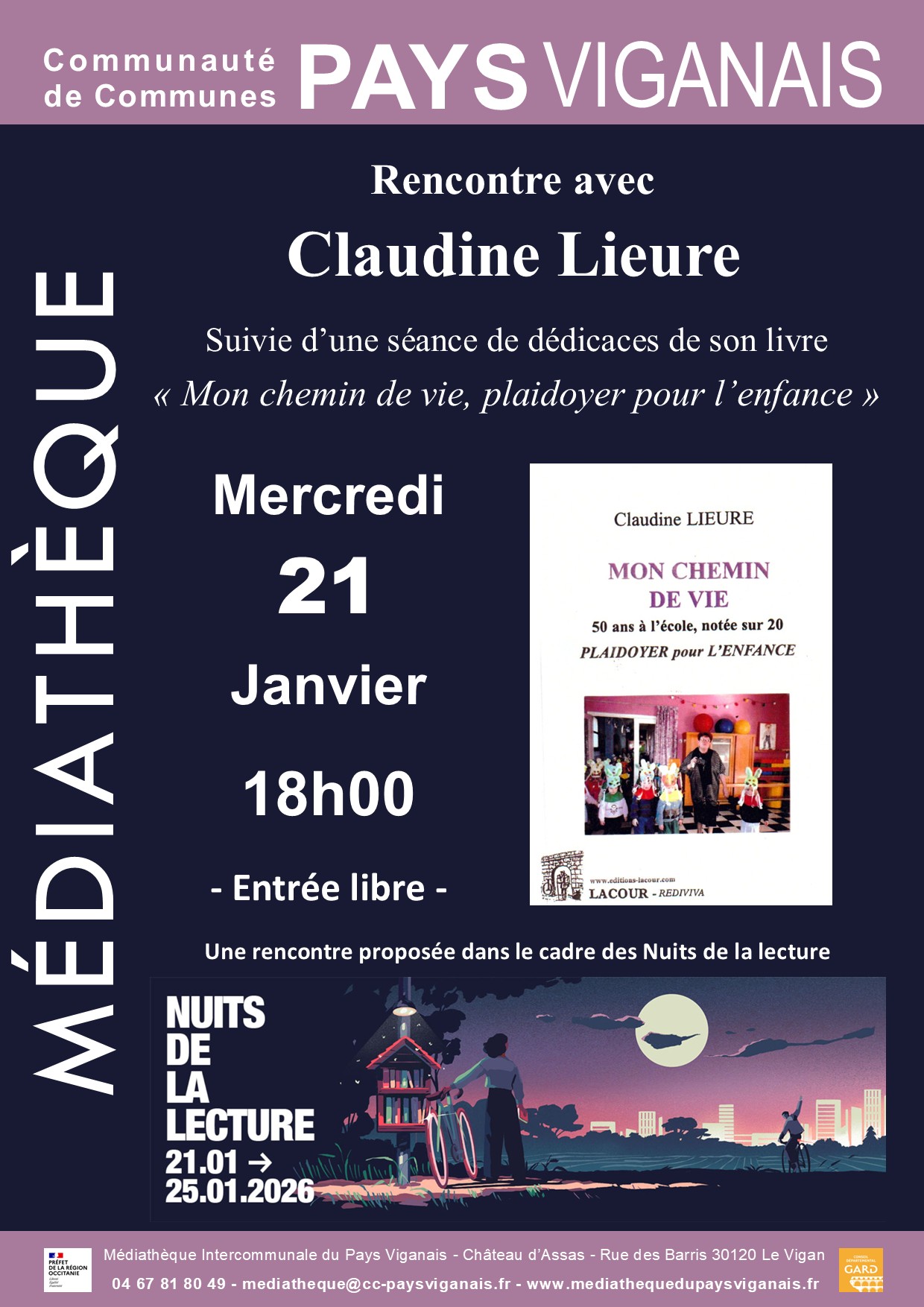 Rencontre avec Claudine Lieure autour de son livre « Mon chemin de vie, plaidoyer pour l’enfance », suivie d’une séance de dédicaces
