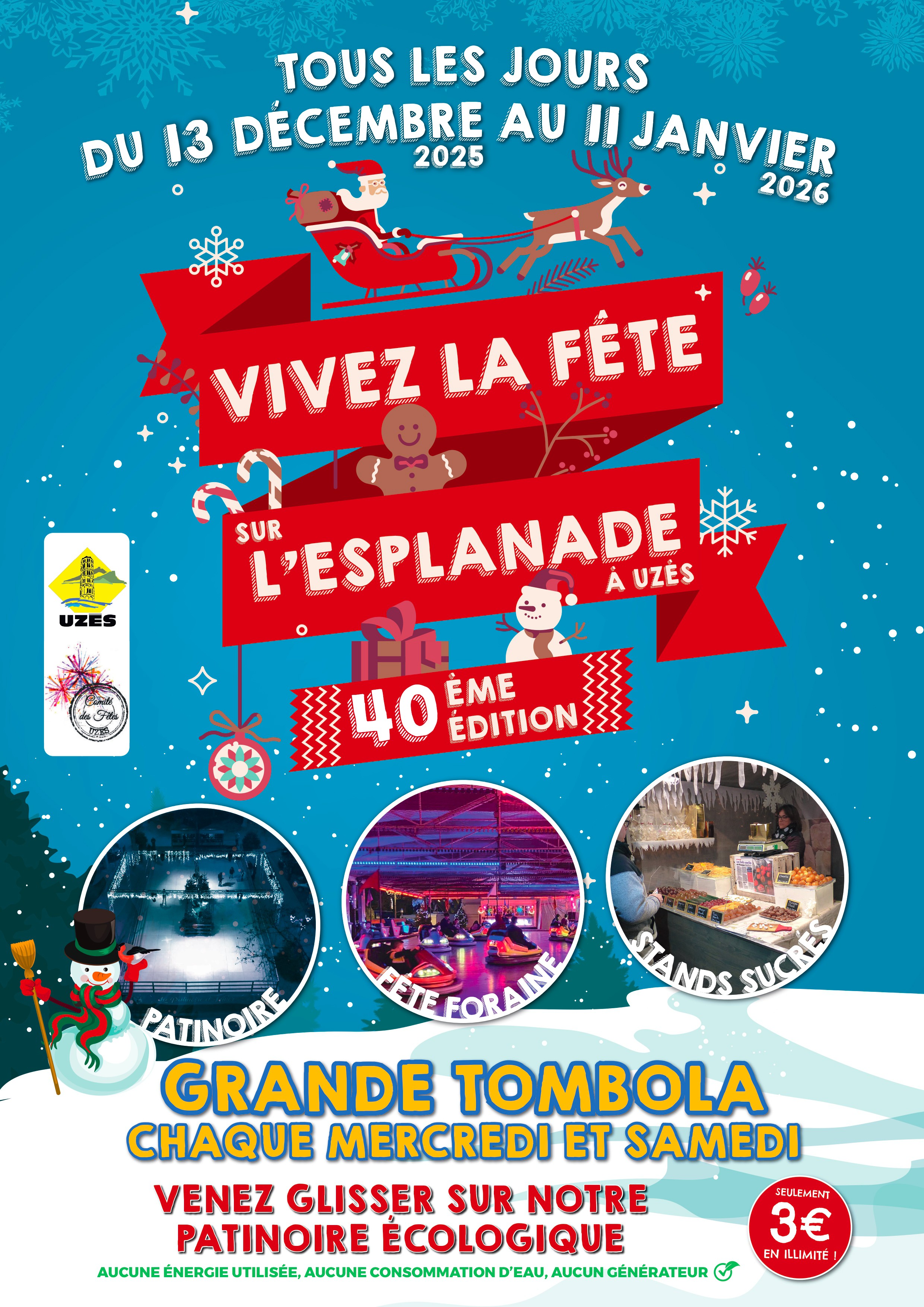 La patinoire et la fête foraine sont de retour à Uzès sur l’Esplanade, pour le plus grand bonheur des petits et des grands ! Vivez la fête sur l’Esplanade, grande tombola chaque mercredi et samedi ! Venez glisser sur notre patinoire écologique.
