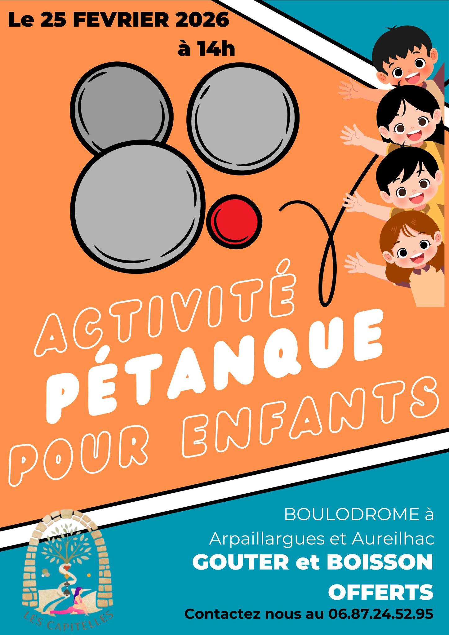 La section pétanque des Capitelles organise une activité pétanque destinée aux enfants à partir de 7 ans. Un goûter sera servi en fin d’après-midi.