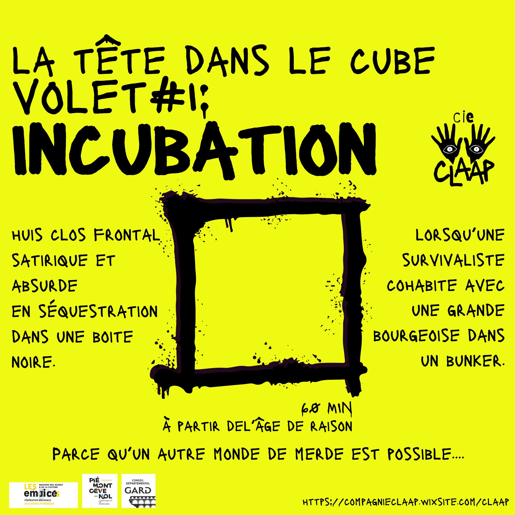 De 14h30 à 17h : déambulations sur le terrain et dans les logis par petits groupes, échanges, réponses à vos questions. Boissons chaudes servies à la Kasanou 17h30 : Spectacle « La tête dans le cube », par la Compagnie CLAAP : huis clos frontal, satirique et absurde en séquestration dans une boîte noire / Parce qu’un autre monde de merde est possible.