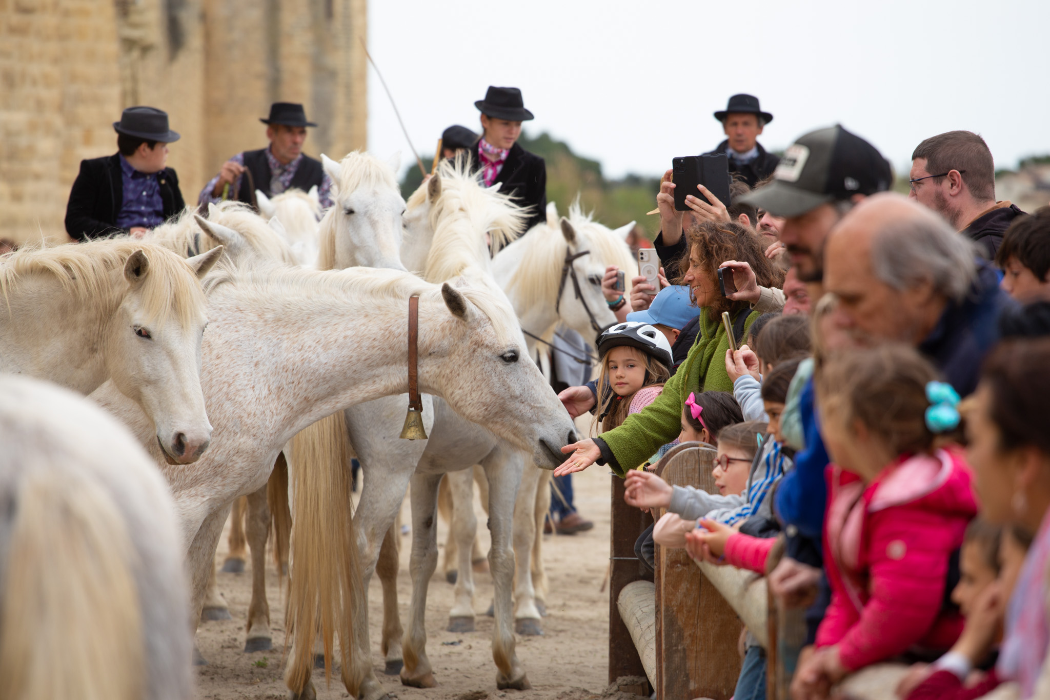 Transhumance dans les rues, roussataïo (juments et poulains), danses provençales, mini-ferme, ateliers, expositions, dégustations de vins AOP Sable de Camargue et animations musicales rythment ces deux journées conviviales au cœur de la Camargue.