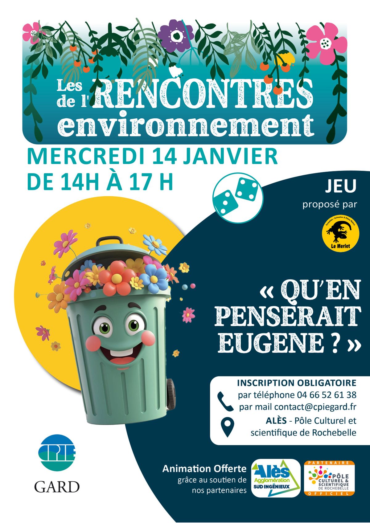 L’association Le Merlet vous invite à participer à un jeu hilarant pour tout savoir sur les poubelles d’hier et d’aujourd’hui ! 2 ateliers de 1h30 sont prévus au cours de l’après-midi. Les horaires seront communiqués à l’inscription. Cette animation est proposée dans le cadre des « Rencontres de l’Environnement et des Mercredis du Pôle.