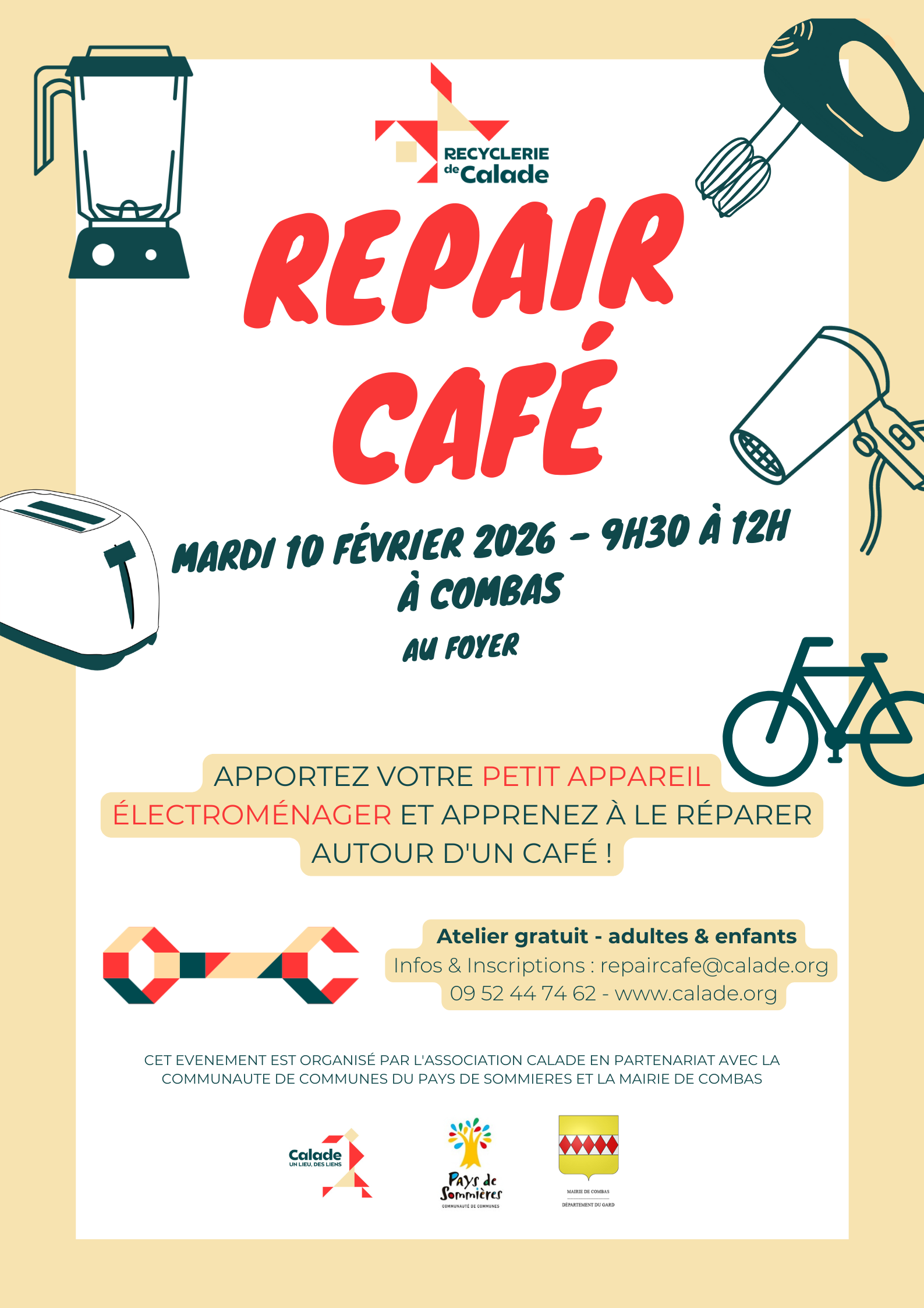 Réservation : Inscription sur : https://calade.org/repair-cafe/inscription