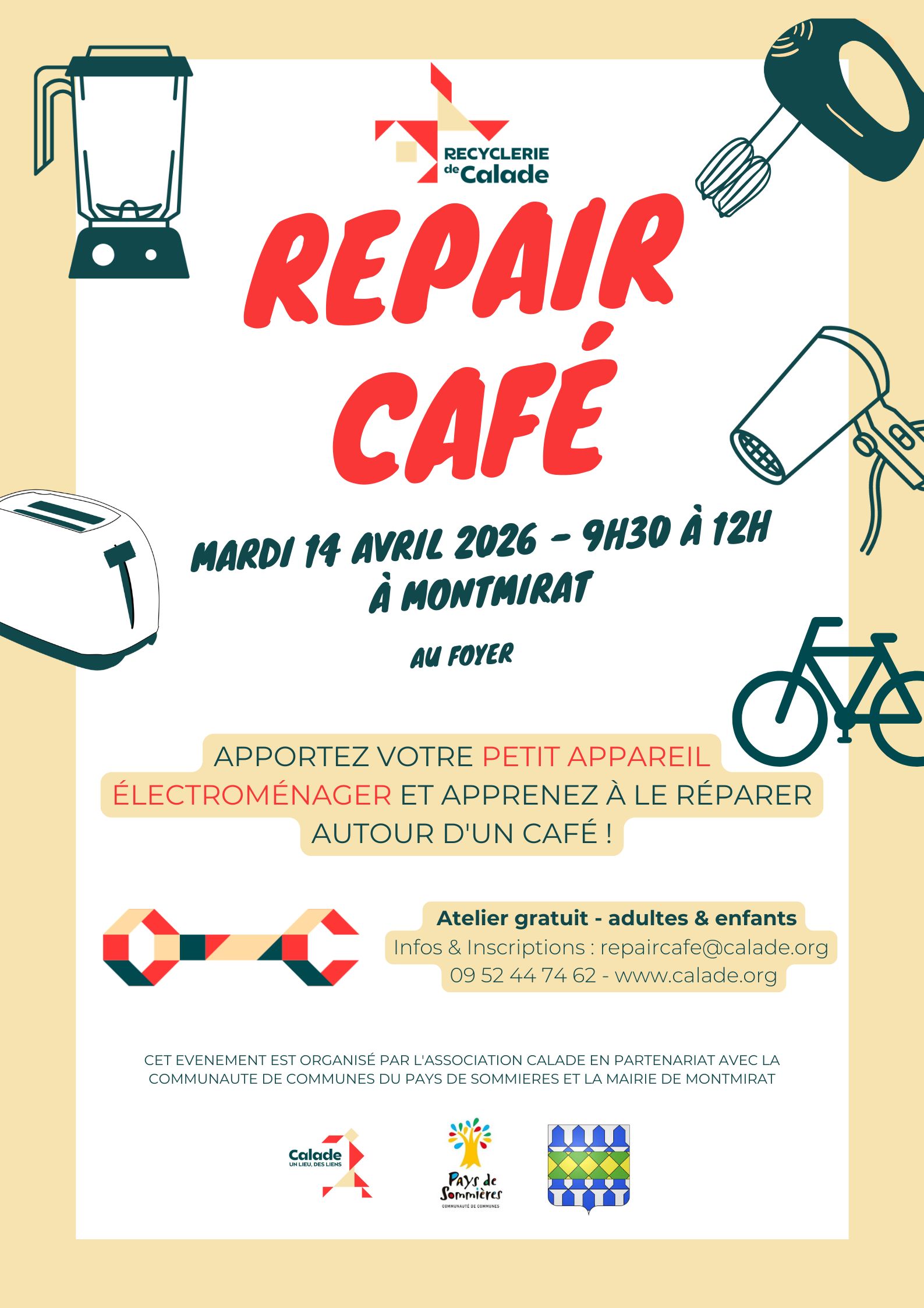 Apportez votre petit appareil électroménager/électronique et apprenez à le diagnostiquer, démonter et réparer avec l’aide de 4 experts bricoleurs. Atelier pour adultes et enfants. Cafés, croissants et bonne humeur offerts par Calade en Vadrouille.