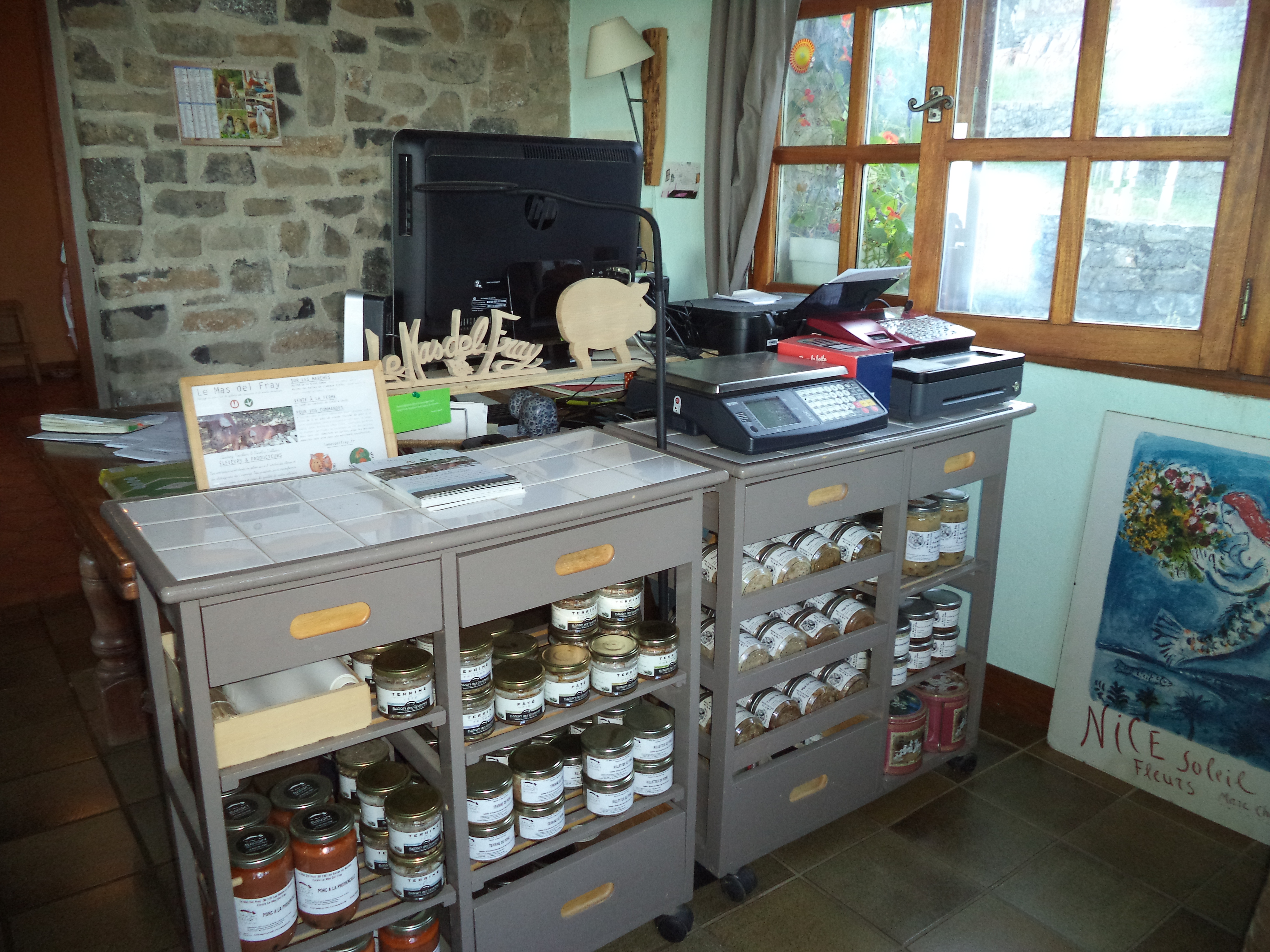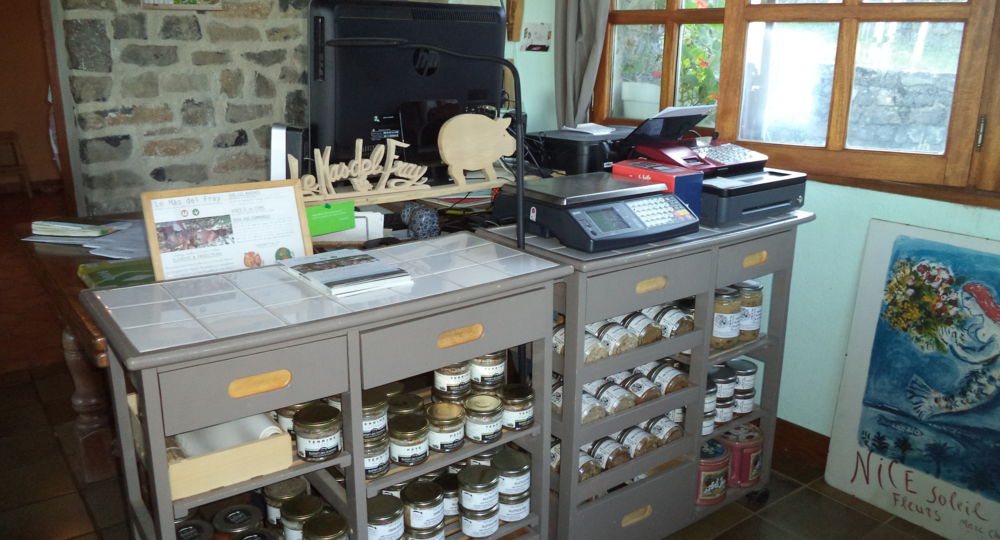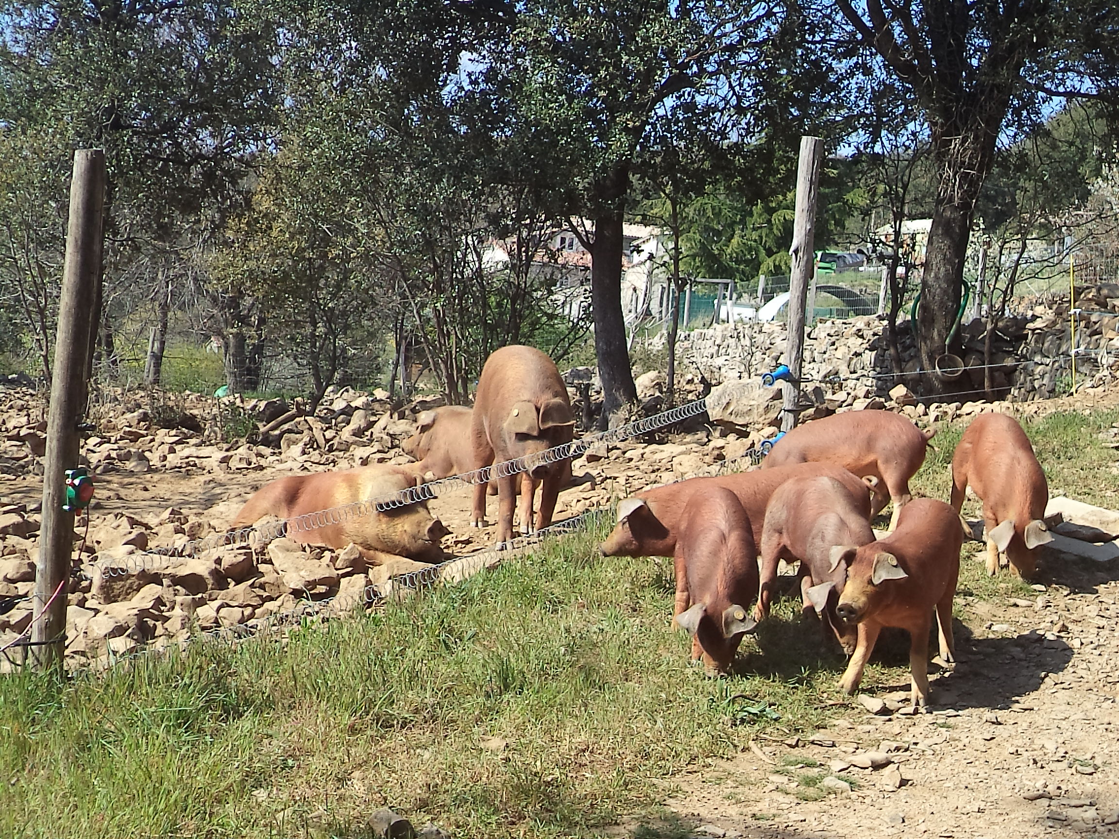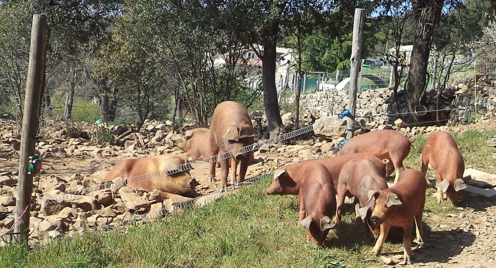 Repas à la ferme Le Mas del Fray, élevage de porcs plein air.après une visite d’une heure dans nos parcs à cochons, nous vous proposons apéritif et repas paysan devant une vue splendide du bassin alésien