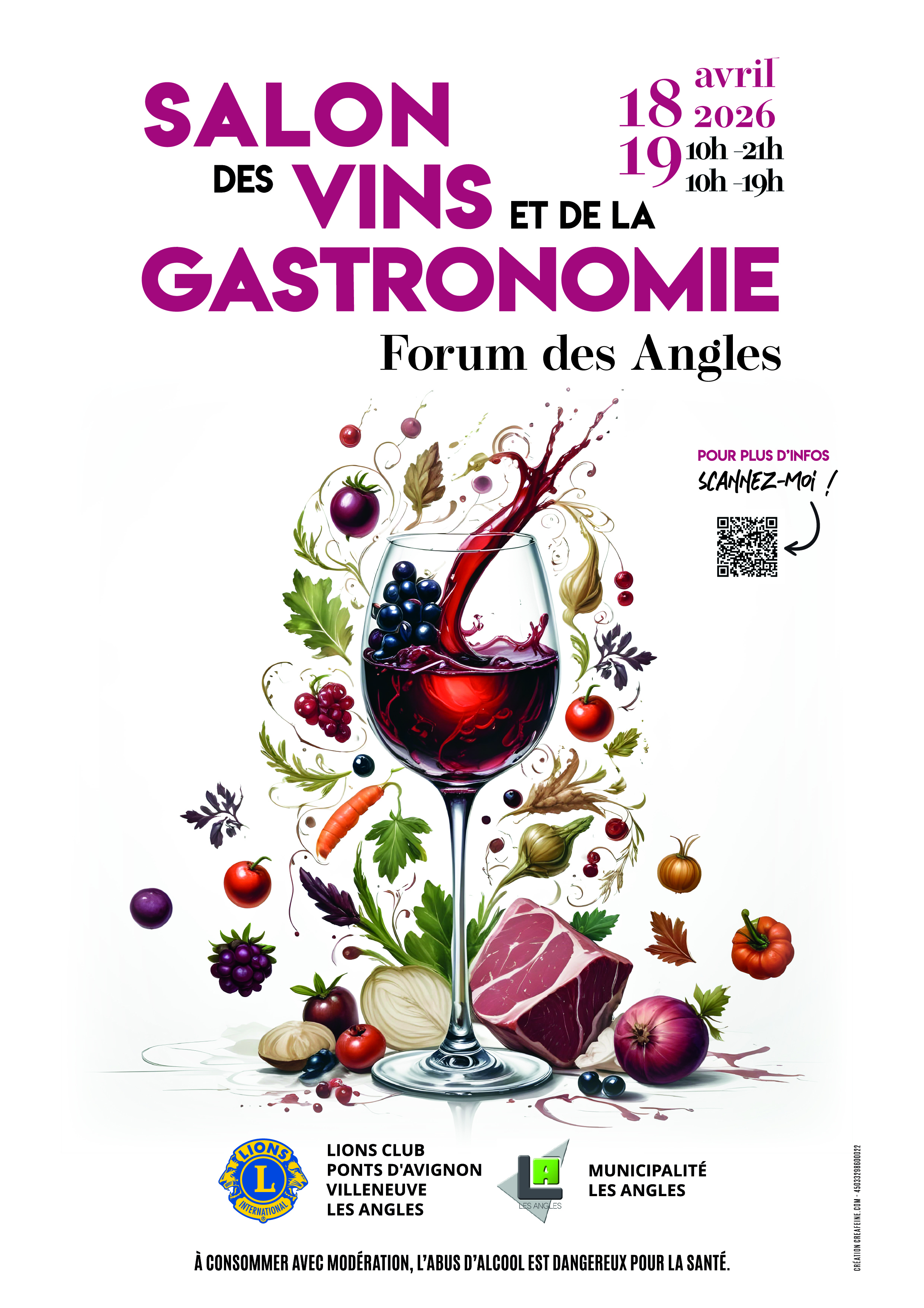 Le Lions Club Ponts d’Avignon-Villeneuve-Les Angles organise son 2ème Salon des Vins et de la Gastronomie où patrimoine viticole et gastronomie des régions françaises et du Gard seront mis en valeur.