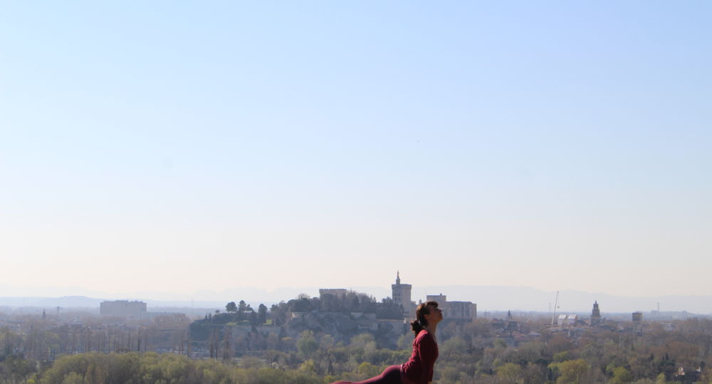 Une séance de yoga sur les terrasses panoramiques ou sous l’oliveraie centenaire. Face au Palais des Papes, au Ventoux et aux Alpilles, un moment de méditation pour vivre les jardins autrement avec Camille Roux (Inspire Yoga).