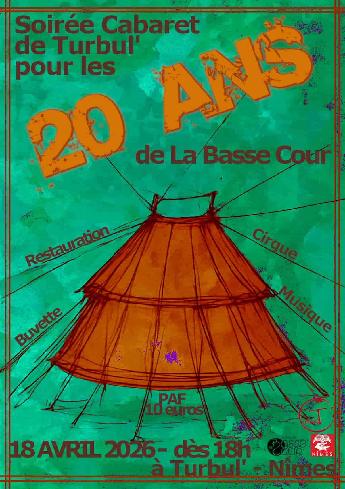 Le collectif de cirque La Basse Cour fête ses 20 ans ! Une soirée cabaret est prévue l’école de cirque Turbul’ pour fêter le printemps et l’anniversaire du collectif.