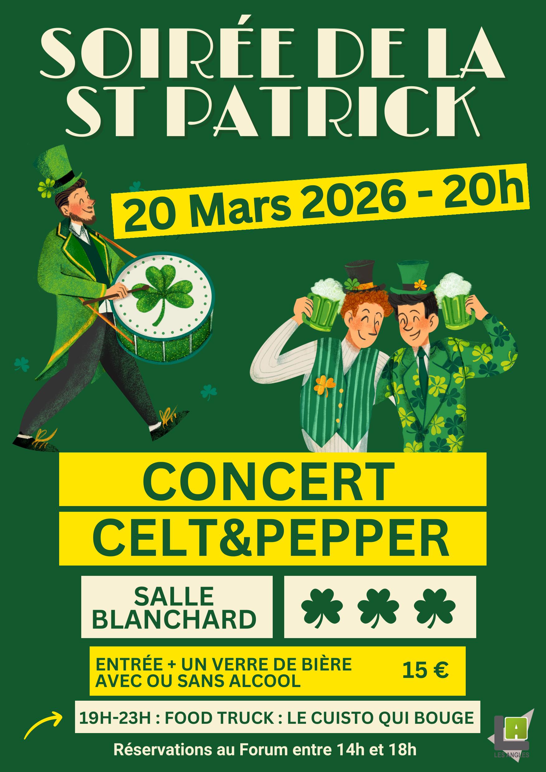 Venez célébrer la Saint-Patrick dans une ambiance festive et conviviale ! Animation musicale avec le groupe Celtic & Pepper, pour une soirée aux sonorités irlandaises !