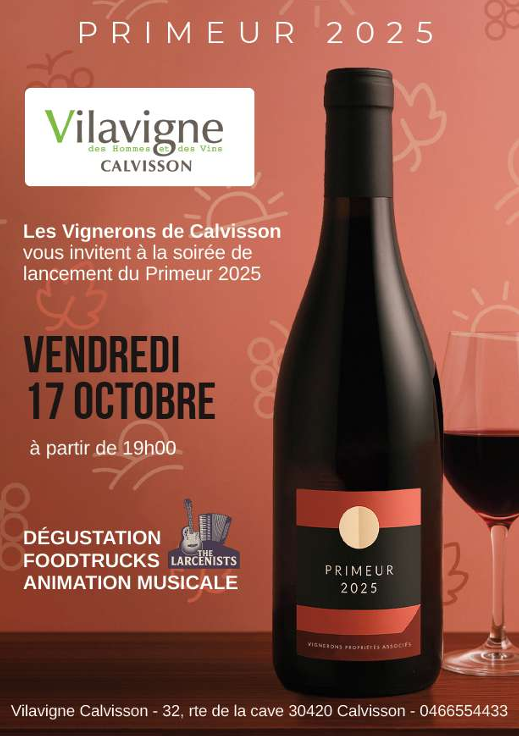 Les vignerons de Calvisson vous invitent à une soirée festive de découverte du Primeur 2025. Foodtrucks, dégustation et animation musicale.