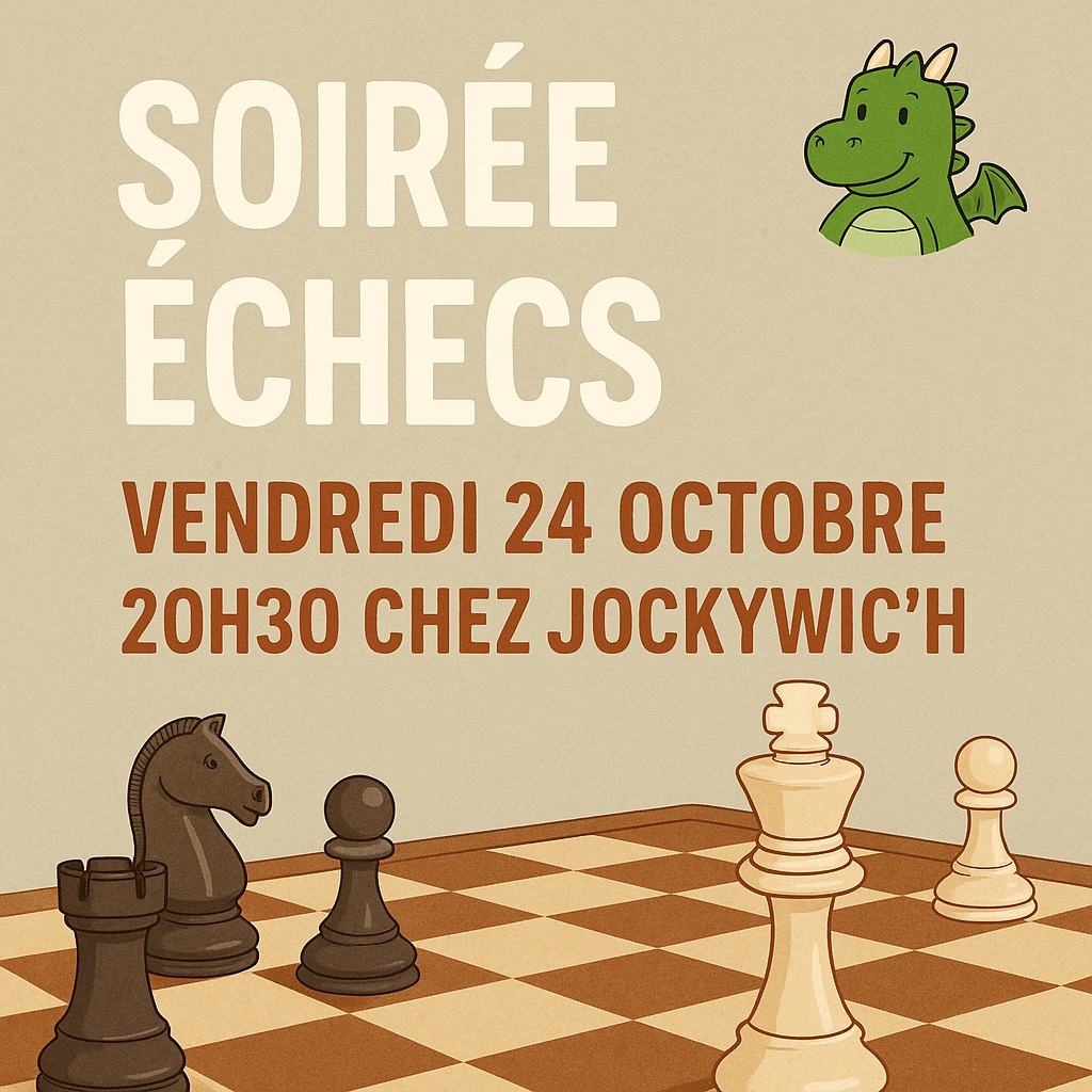 Que vous soyez débutant, curieux ou stratège confirmé, venez apprendre, affronter, partager et surtout passer un super moment autour de l’échiquier ! Ambiance conviviale, bonne humeur garantie et plein de joueurs à découvrir !