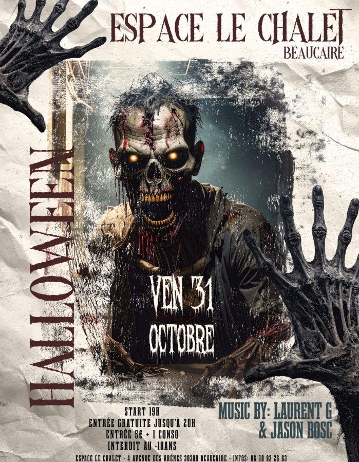 Repise des soirées d’hiver à l’Espace Le Chalet à Beaucaire… Pour vous l’occasion le Chalet vous donne rendez-vous pour une traditionnelle soirée « HALLOWEEN »