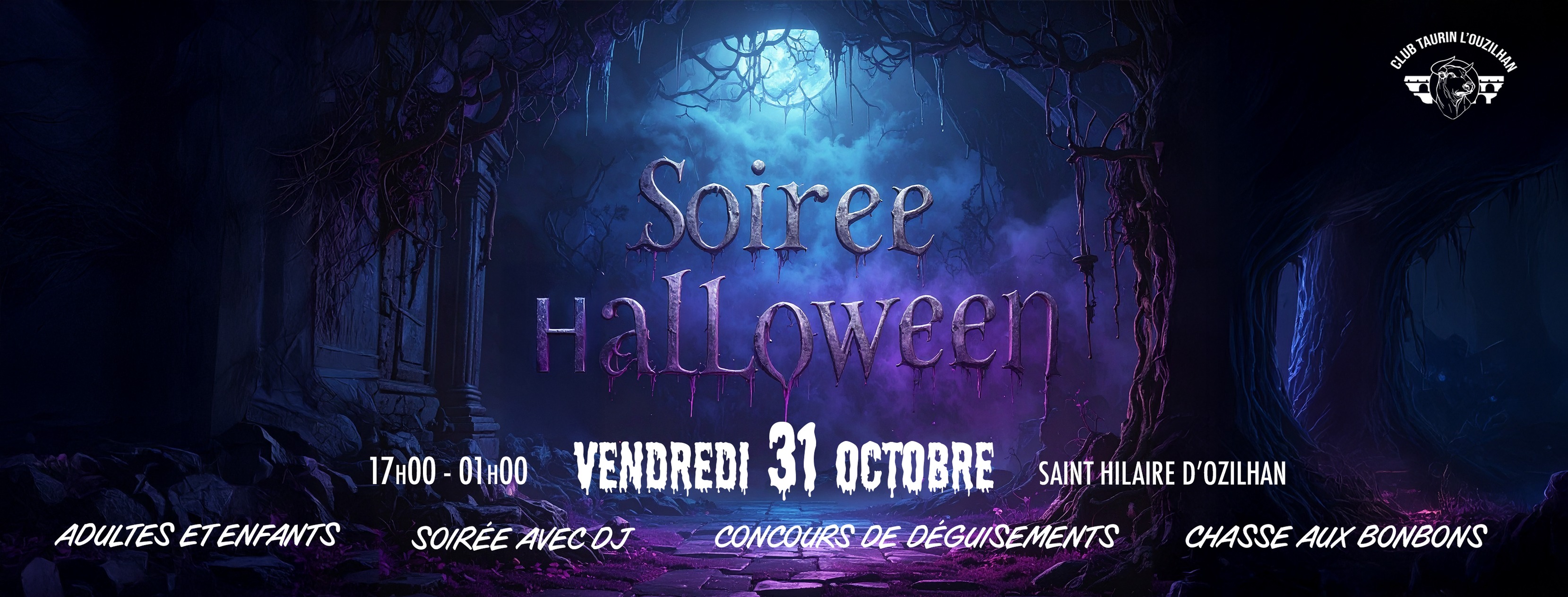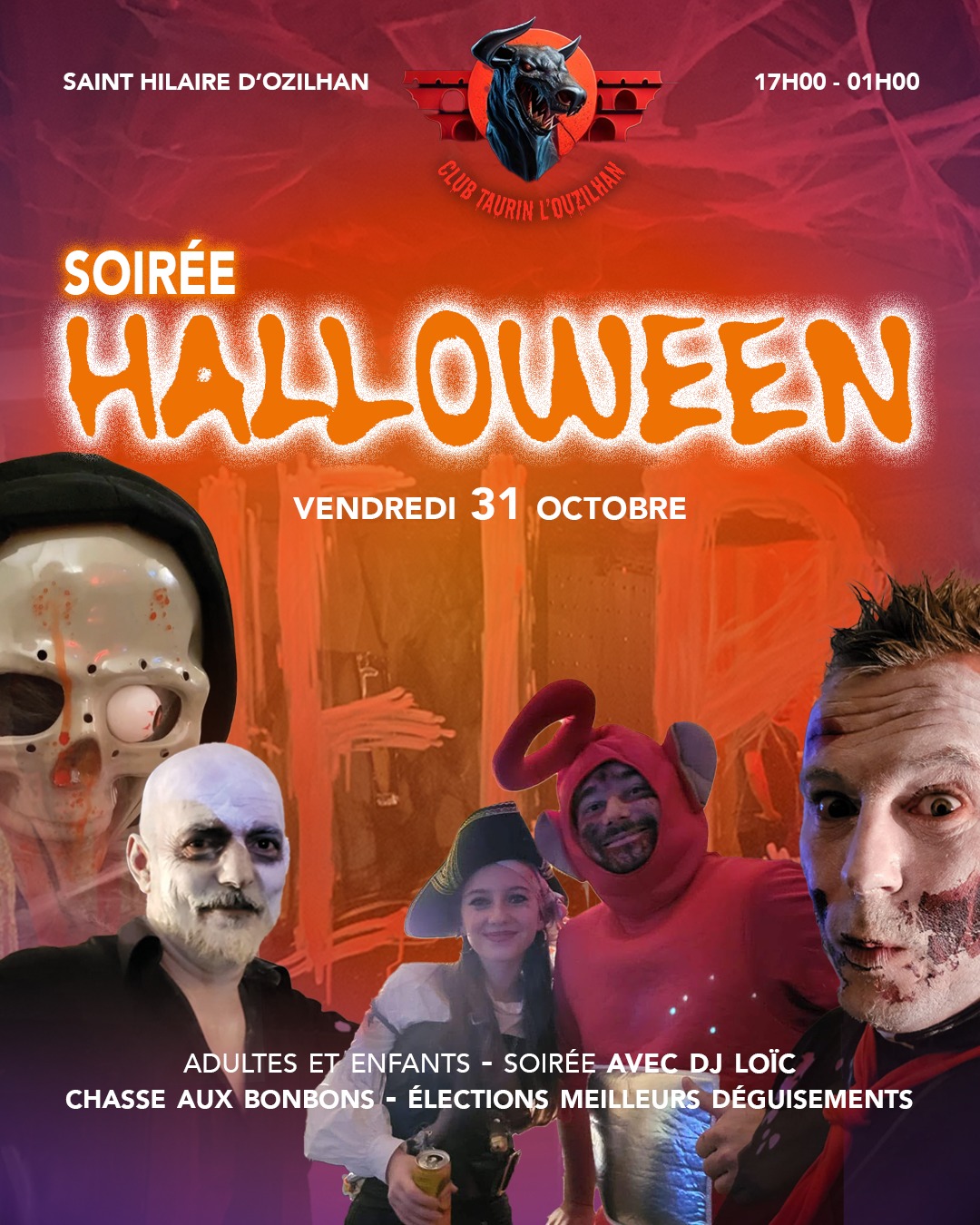 Le club taurin vous convie à sa soirée d’Halloween. La fin de journée sera dédiée aux enfants avec une chasse aux bonbons dans le village suivi de la traditionnelle boum. Le reste de la soirée sera réservée aux adultes, animée par Dj Loïc!